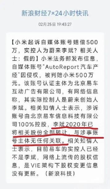 图1: 论媒体瞎说八道的本领,现在知道为什么Autoreport为什么会被罚500万吧? 图2: 此事跟蔚来李斌毫无关系。 知情人士辟谣小米诉李斌控股企业【来自懂车帝车友圈】