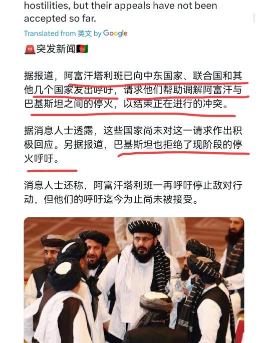 阿富汗被巴基斯坦打怕了,阿富汗塔利班主动求和!2月27日,根据阿富汗时报报道,阿富汗塔利班正呼吁中东国家、联合国和其他几个国家帮助调解与巴基斯坦的停火并停止正在进行的冲突。阿富汗塔利班一再敦促停止敌对行动,但塔利班的呼吁迄今尚未被接受。 阿富汗塔利班是真被巴基斯坦打怕了,彻底放下了之前的硬气,乖乖低头求和。 此前还放狠话要与巴基斯坦死磕到底,结果被巴铁一顿狠揍后,连还手之力都没有,转头就求助联合国、中东国家帮忙调解,恳请巴基斯坦停火,可巴基斯坦压根不予理会——说白了,就是打疼了、打怂了才想起装孙子,早没意识到自己的问题所在。 巴阿冲突绝非偶然,全是塔利班自身作出来的。阿富汗与巴基斯坦边境线漫长,长期不太平,尤其是2021年塔利班重新掌控阿富汗后,矛盾彻底爆发。 塔利班上台后,嘴上喊着稳定国内、睦邻友好,背地里却纵容恐怖组织,这才彻底激怒了巴基斯坦。 巴基斯坦境内的“巴基斯坦塔利班”(TTP)是臭名昭著的恐怖组织,虽与阿富汗塔利班名义上独立,却有着千丝万缕的联系。 阿富汗塔利班长期偷偷为TTP提供藏身之处、弹药补给,甚至默许其从阿富汗越境,在巴基斯坦发动恐怖袭击,残害巴方士兵和无辜民众。 巴基斯坦多次警告塔利班清剿TTP,可塔利班阳奉阴违,始终把巴方的警告当耳旁风,继续纵容恐怖分子,彻底耗尽了巴方的耐心。 忍无可忍的巴基斯坦果断出手,这次丝毫没有惯着塔利班。无论是空中无人机轰炸,还是地面装甲部队清剿,都对着塔利班边境据点猛轰,一举端掉其多个重要弹药库和训练营,塔利班伤亡惨重。 这些平时只会欺负阿富汗平民和反对派的武装分子,遇上巴铁正规军根本不堪一击,据点接连丢失,士兵伤亡不断,再打下去,边境控制权都将彻底丧失。 雪上加霜的是,塔利班如今内忧外患缠身。阿富汗国内本就一穷二白,民生凋敝,粮食、药品极度短缺,连年战乱让民众苦不堪言。 如今与巴基斯坦开战,边境民众流离失所,民怨沸腾,塔利班的统治已然动摇。一边是巴铁的猛烈打击,一边是国内的动荡不安,塔利班实在扛不住了,才放下身段主动求和。 2月27日,据《阿富汗时报》报道,塔利班公开发出呼吁,恳请中东国家、联合国及其他相关国家,协助调解与巴基斯坦的冲突,敦促双方停火止战。 这已不是塔利班第一次求和,此前私下沟通被巴方拒绝后,便转而求助国际社会,姿态放得极低,与此前的横劲判若两人。 可现实是,塔利班的求和呼吁至今未被接受,尤其是巴基斯坦,直接无视其诉求,打击行动从未停止。 这并非巴铁不近人情,而是塔利班毫无信用可言。此前巴基斯坦多次与塔利班沟通,塔利班每次都承诺清剿TTP,却转头就给恐怖分子送补给,把巴方的信任当儿戏。 巴基斯坦此次铁了心要彻底解决边境恐怖主义问题,杜绝后患,绝不会因塔利班一句轻飘飘的求和就停火。 巴方明确表态,停火的前提有两个:一是塔利班彻底清剿境内所有TTP武装,并交出恐怖分子;二是保证不再允许任何恐怖组织在阿富汗境内活动,杜绝跨境恐怖袭击。 可这两个条件,塔利班要么做不到,要么根本不想做,其所谓的求和,不过是缓兵之计,想趁机喘息罢了。 塔利班就是典型的欺软怕硬,掌控阿富汗后在国内作威作福,觉得巴基斯坦好欺负,纵容恐怖分子肆意挑衅,遇上硬茬被打疼后,才想起求和,实在丢人。 他们从未想过,纵容恐怖分子不仅害了巴基斯坦,更害了阿富汗自己,两国冲突中受苦最深的还是普通民众。 联合国和中东国家虽收到塔利班的求助,却并未真正出手调解,毕竟大家都清楚塔利班的可信度极低,若贸然调解让巴方停火,塔利班大概率会故技重施,届时只会得不偿失。 说到底,塔利班如今的处境全是自食其果。若当初听从巴基斯坦的警告,清剿恐怖分子、睦邻友好,也不会落到这般田地。如今求和遭拒,就是最深刻的教训。 巴基斯坦的打击不会轻易停止,除非塔利班拿出真正的诚意,彻底清剿恐怖分子,否则只会被打得更惨,甚至丧失边境控制权。 塔利班唯有放弃侥幸心理,好好整顿国内、善待民众、与邻为善,才能走出当前的困境。