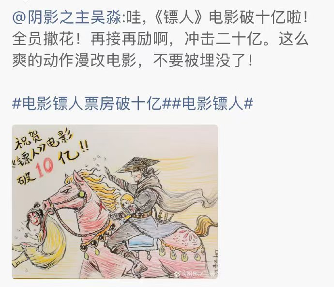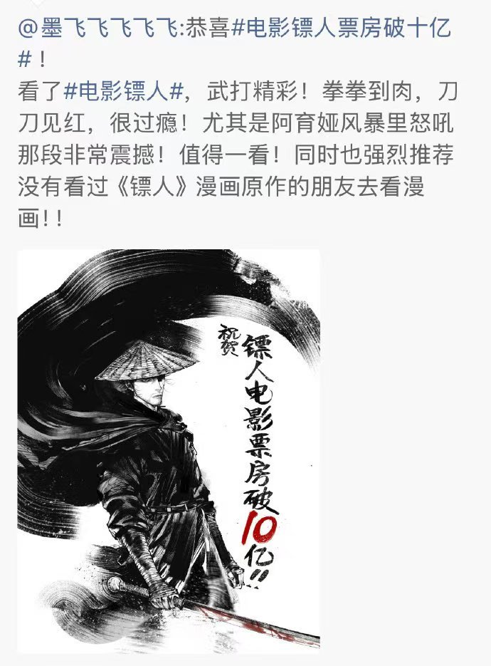 镖人 贺图 十亿票房,是对《镖人》艺术价值与商业价值的高度认可。它在保留漫画精髓的同时,进行了创新性的改编,为观众带来了一场视听与情感的双重盛宴,恭喜!