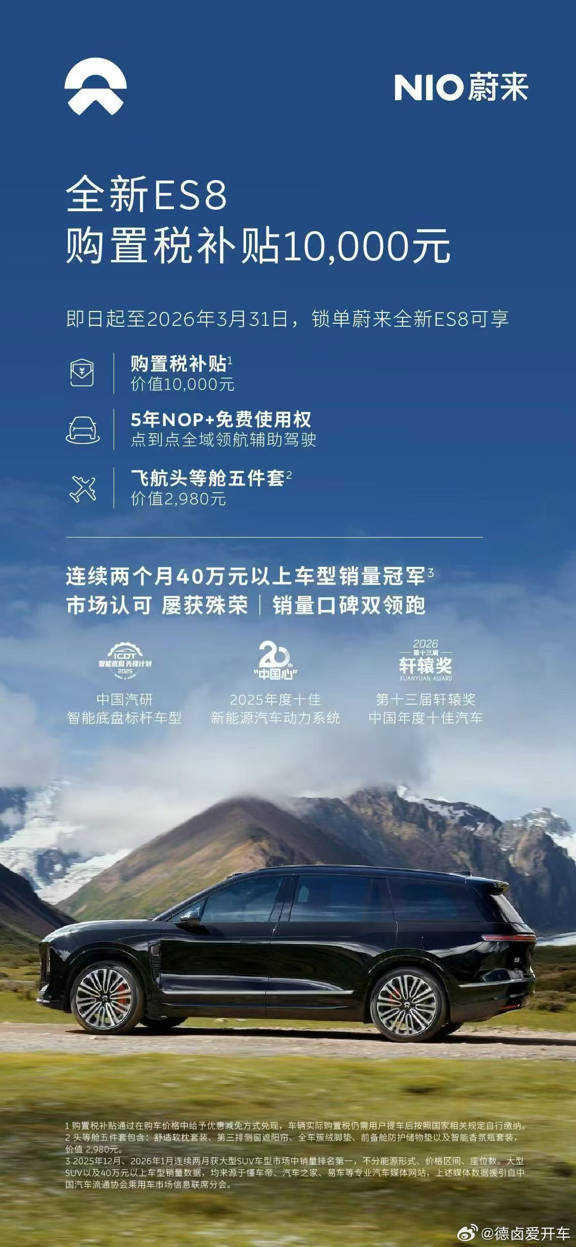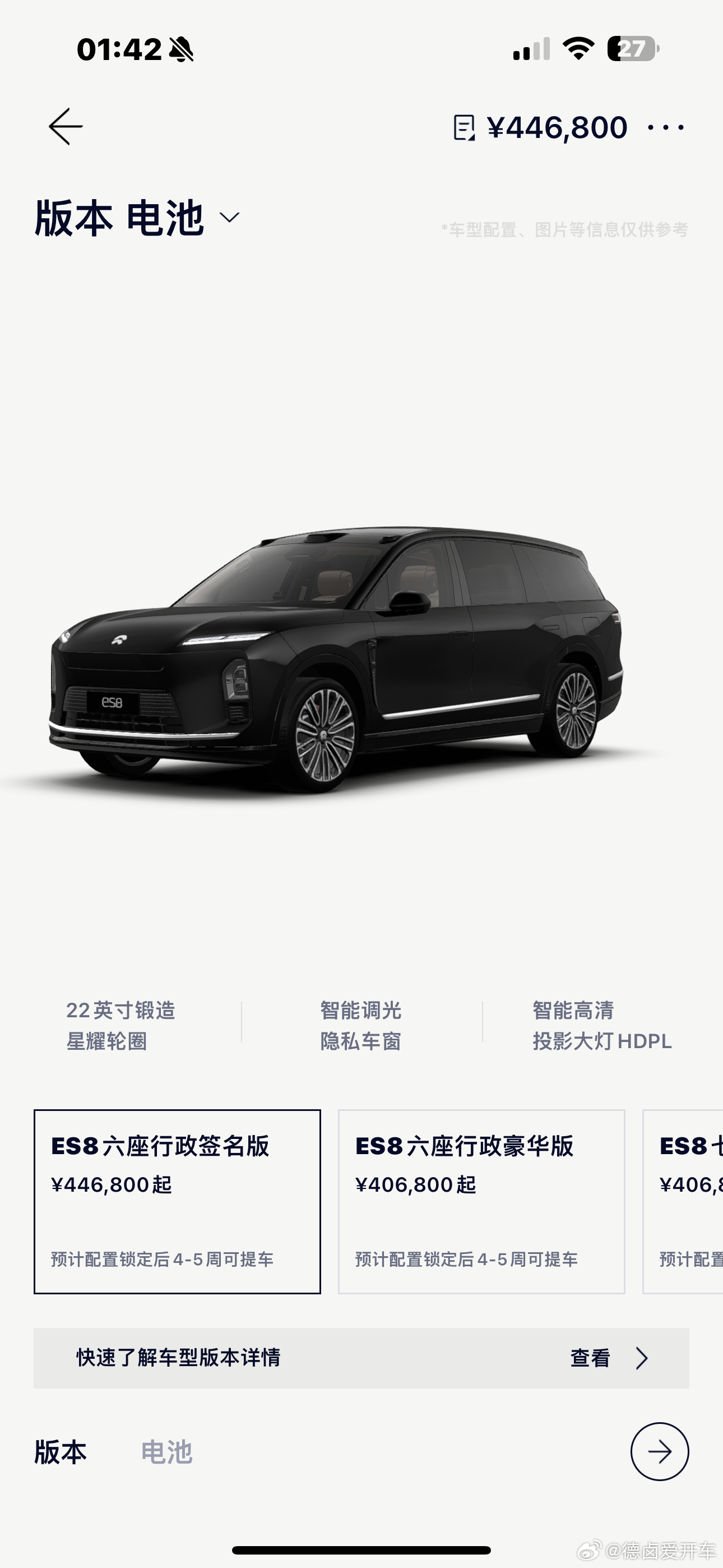 本月全新 ES8 则加推两项销售优惠,1 万元购置税补贴、头等舱 5 件套等,目前 ES8 的新订单交付时间为 4-5 周。