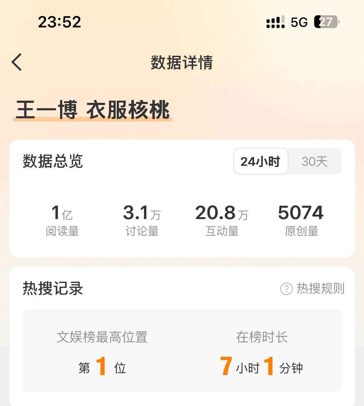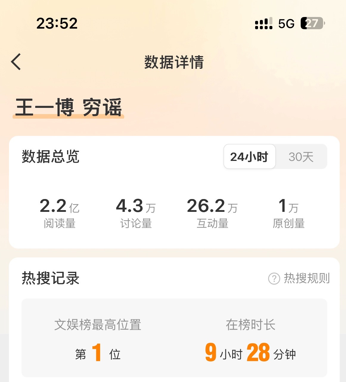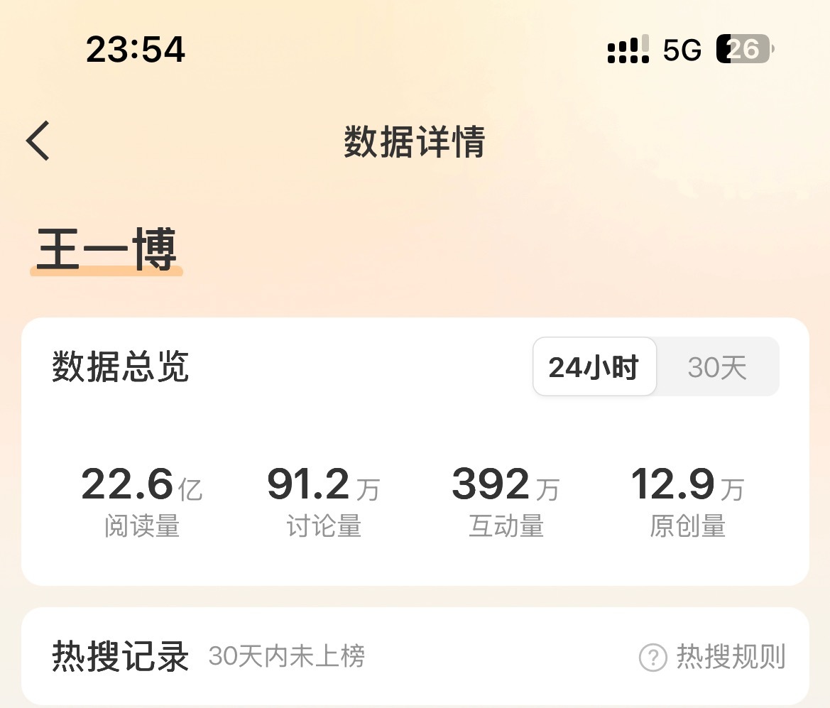 用户10xxx37 2026-03-01 18:39 王一博还是太火了。低调不常参加活动,不常营业,也暂停了接影视剧。受邀参加《微博之夜》立马红毯断层,救场华纳副总裁口碑大爆;春晚央妈邀回内娱,与前辈郭富城同表演节目,央视官方登顶破亿,微博连续4天微指破亿,微博24小时28亿+,又一次引全民翻跳;马上又要时装周及赛车;一些人确实坐不住了,结果爆料人大意,实体认证自己造谣翻车实锤
