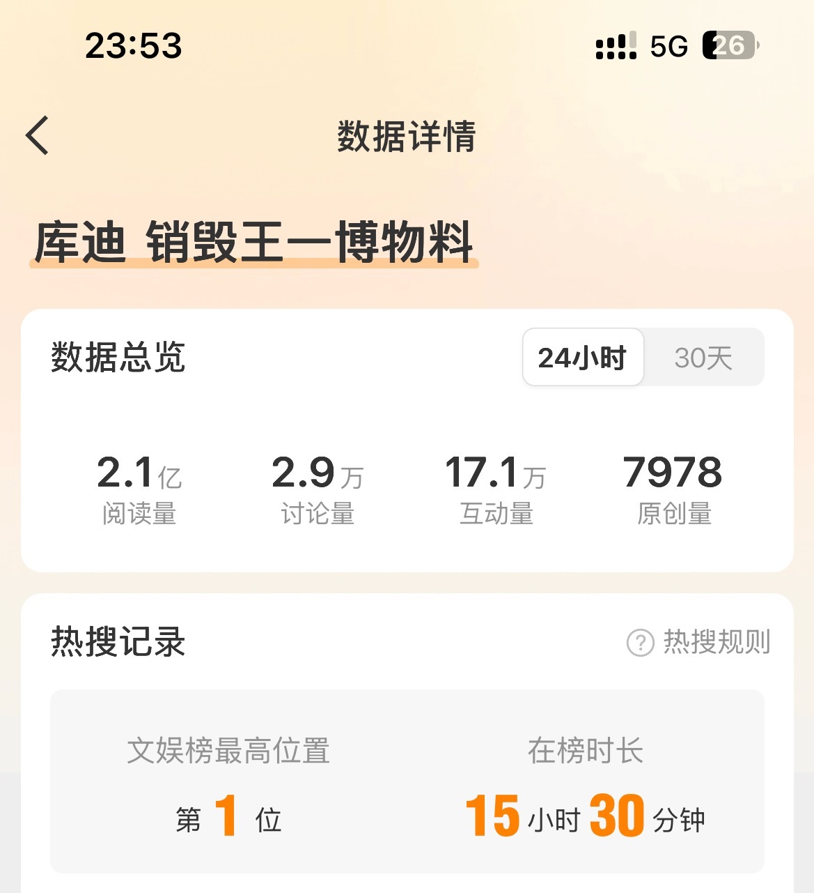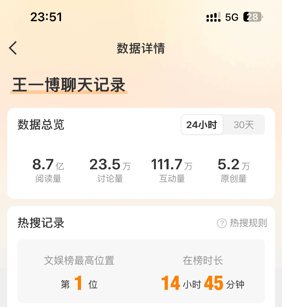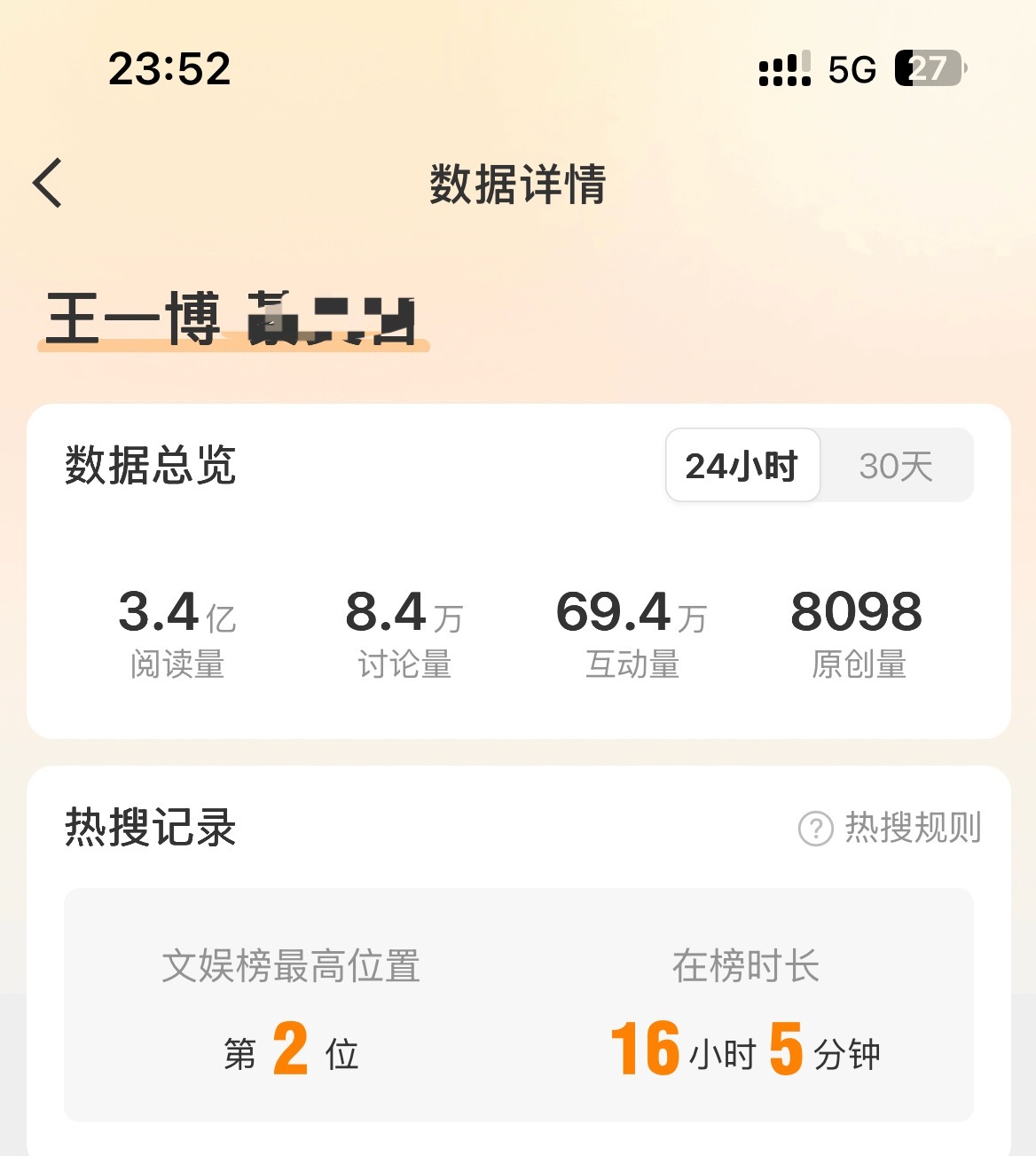 用户10xxx37 2026-03-01 18:39 王一博还是太火了。低调不常参加活动,不常营业,也暂停了接影视剧。受邀参加《微博之夜》立马红毯断层,救场华纳副总裁口碑大爆;春晚央妈邀回内娱,与前辈郭富城同表演节目,央视官方登顶破亿,微博连续4天微指破亿,微博24小时28亿+,又一次引全民翻跳;马上又要时装周及赛车;一些人确实坐不住了,结果爆料人大意,实体认证自己造谣翻车实锤