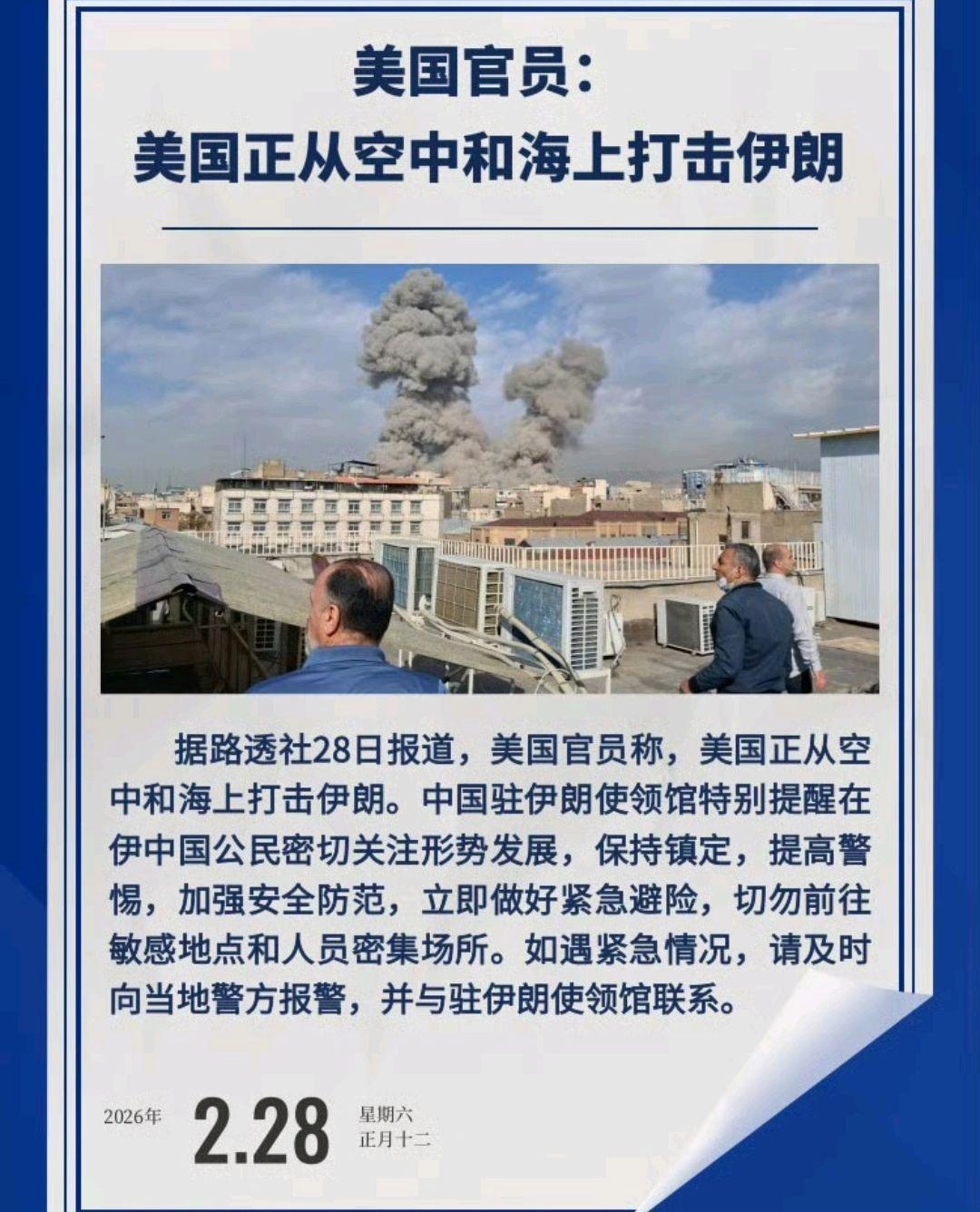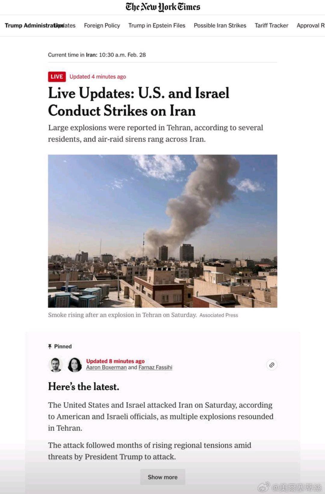 3月1日,据央视新闻客户端报道,昨天以色列军方宣布,美以向伊朗数百个目标实施轰炸,其中包括伊朗最高精神领袖哈梅内伊办公地点、总统府、国防部、情报机构、安全决策机构、弹道导弹基地、海军基地、核设施等重要目标实施斩首行动及摧毁行动。 昨天,美国总统特朗普宣布,彻底摧毁伊朗弹道导弹基地,对伊朗实施高强度袭击4一5天。 据伊朗报道,美以轰炸伊朗一所小学,造成50名女学生死亡。 评论,美国与以色列是一个十恶不赦恐怖国家,昨日美国、以色列公然对一个主权国家实施侵略行为,严重的违反国际法和联合国宪章。 联合国及安理会应该谴责美国、以色列侵略行为,同时对美国、以色列实施制裁,让他们付出代价。