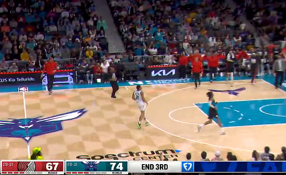 格威抢断破坏开拓者本节最后一攻,黄蜂三节74-67领先开拓者