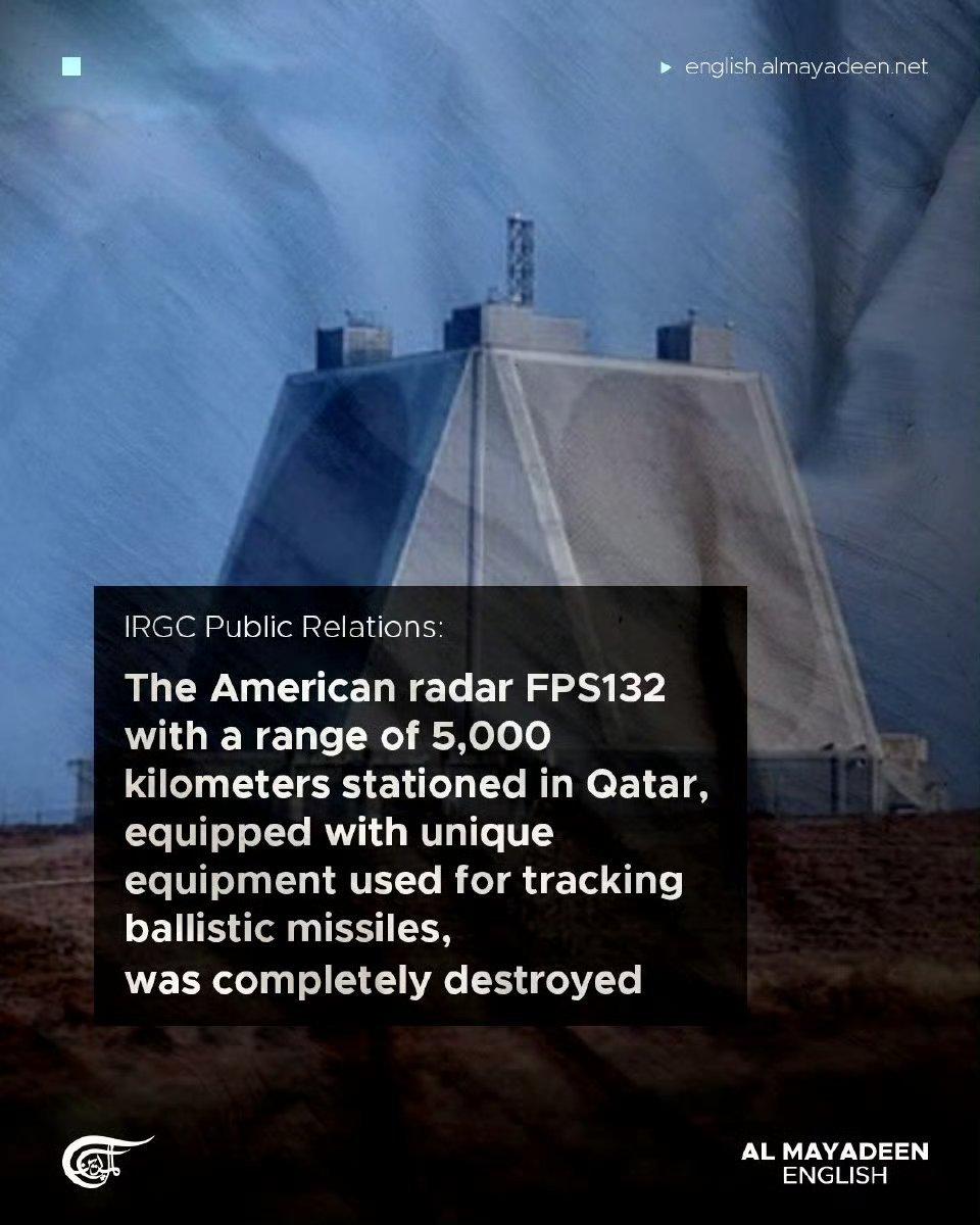 除了在巴林,美军遭遇到重大打击之外,美军在卡塔尔军事基地,也同样遭到了重创,一点也瞒不住了!当地时间2月28日,央视新闻报道称,卡塔尔国防部一位消息人士表示,卡塔尔北部一处远程预警雷达当天遭遇伊朗导弹袭击。而这可不是一般的雷达,而是美军远程战略预警雷达,这款雷达对于我们来说有个熟悉的名字:铺路爪弹道导弹预警雷达。伊朗革命卫队宣布:“卡塔尔境内美国雷达站已被彻底摧毁”,“伊朗革命卫队对部署在卡塔尔的一处,美国早期预警雷达系统发动重大打击。”美军在卡塔尔部署了,AN/FPS‑132战略越境雷达,已伊朗导弹彻底摧毁。这款战略预警雷达探测距离达5000公里,用于弹道导弹预警,监控伊朗高超音速导弹,中远程弹道导弹,结果大跌眼镜的是,在2月28日,开战首日,本应该监控伊朗导弹的美军战略预警雷达,却被伊朗导弹摧毁了。 造价高达11亿美元,号称探测距离5000公里的美国预警雷达,居然被伊朗导弹和无人机给炸烂了!美军把这种战略目标,居然放在前线,唯一的防护罩就是对方不敢打,结果伊朗真敢打了,真敢动手轰炸。 截止北京时间3月1日凌晨4点,伊朗一共目前向卡塔尔境内发射了44枚导弹和8架自杀式无人机,轰炸的目标包括了美军中央司令部,战略预警雷达,乌代德空军基地,萨德反导阵地等。关键是这个美军预警雷达,是一个大家伙,毁了想重建办不到。绝对的高价值目标了。卡塔尔购买的美军整套系统,官方合同总价约11亿美金,还是10年前价格,挺贵的就是了,关键是打一个少一个,美国造不出新的了。