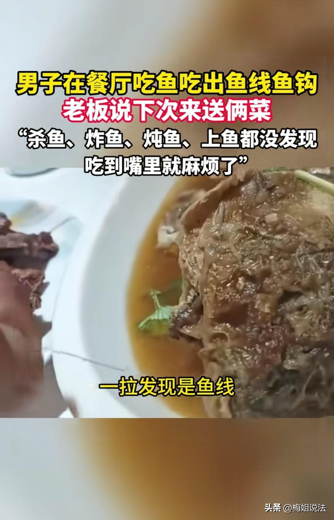 河南濮阳,一男子吃鱼,吃着吃着发现鱼嘴上有根“胡须”,手贱一拉,结果整个人麻了——鱼线越拉越长,最后竟拽出一个明晃晃的鱼钩!老板送了四瓶饮料,并表示下次来再送俩菜。 就在前两天,郭先生遭遇了“餐桌惊魂”。他正美滋滋地夹起一块鱼肉,突然发现鱼嘴边挂着两根“胡须”。 这鱼还挺别致?他顺手一拽,不对劲,这“胡须”怎么还带弹性的?再一使劲,好家伙,直接从鱼嗓子眼里拽出一根完整的鱼线加鱼钩! 郭先生,那天可能是心情不错,也可能是想打打牙祭,总之,他走进了这家餐厅,点了三道菜。 对于吃饭的人来说,等待的过程是煎熬且幸福的。 菜终于上桌了,热气腾腾,酱香浓郁,郭先生拿起筷子,伸向了那条看起来人畜无害的鱼。 他先是夹了一口鱼肉,嗯,味道还行。 接着,他想挑点鱼身上的“活肉”尝尝,于是把目光瞄准了鱼头附近。这时候,他注意到了鱼嘴边有根细长的东西。 “这鱼嘴上怎么还有胡须呢?歪歪扭扭的。” 郭先生心里犯着嘀咕,顺势就捏住了那根“须子”,轻轻一拉,拽出了那根“须子”后面,竟然是一条细细的鱼线! 带着三分震惊、三分好奇、还有四分不信邪,郭先生开始了最后的“收线”动作。他捏着那根线,缓慢而坚定地往外拉。 一个闪着寒光的鱼钩,在鱼肉的包裹下,重见天日! 这一刻,郭先生沉默了。看着盘子里那条鱼,赶紧叫来了老板… 老板见状,连忙道歉并表示不好意思,说“我给您换一盘。” 当事人郭先生是个不拘小节的人,从容的说“不用不用。” 随后,老板拿出四瓶饮料送给当事人,并表示“下次再来送你两道菜”。 咱们得说,郭先生脾气是好,但换做其他较真的主儿,这事儿能就这么完了吗? 其实,这事儿背后暴露了一个餐饮行业的通病:粗心。 从鱼被捕捞上来,到运输,到后厨宰杀,再到上灶台炖煮,最后端上桌。 这一套流程里,但凡有一个人眼神好使一点,这鱼钩都不至于出现在郭先生的筷子底下。 尤其是后厨的师傅,杀鱼的时候难道就没发现这鱼的嘴角不对劲吗?还是说现在杀鱼也讲究“无接触配送”,全程闭眼操作? 这顿饭吃得,郭先生估计是“麻”了,不仅是心里麻,想想这鱼钩差点划破口腔或者吞进肚子,那才是真正的后怕。 笑归笑,闹归闹,别拿食品安全开玩笑。 可能有人会说,不就是个鱼钩吗,又没吃进去,老板也道歉了,还送了饮料,差不多得了。 但我要告诉你,从法律角度看,这事可大可小,老板这“四瓶饮料”的诚意,确实有点不够看。 首先,得定性:这属于什么行为? 这不叫“失误”,这叫生产经营混有异物的食品。 根据 《食品安全法》 第三十四条明确规定:禁止生产经营下列食品、食品添加剂、食品相关产品:(六)腐败变质、油脂酸败、霉变生虫、污秽不洁、混有异物、掺假掺杂或者感官性状异常的食品、食品添加剂。 鱼钩,妥妥的“异物”。这玩意儿要是划伤口腔,或者不小心吞下去卡住喉咙,后果不堪设想。 重点来了:如果较真,能赔多少? 这就得搬出著名的 “退一赔十” 条款了。 根据 《食品安全法》第一百四十八条:生产不符合食品安全标准的食品或者经营明知是不符合食品安全标准的食品,消费者除要求赔偿损失外,还可以向生产者或者经营者要求支付价款十倍或者损失三倍的赔偿金;增加赔偿的金额不足一千元的,为一千元。 来给郭先生算笔账: 假设这条鱼加上其他菜,总共消费了200元。 首先退一,这顿饭钱200元,得退回来。 其次赔十,200元的十倍是2000元。 最后保底,如果十倍赔偿算下来不到1000元,直接按1000元赔。 也就是说,哪怕郭先生这顿饭只花了10块钱,因为吃出了鱼钩,最低也能索赔1000元! 最后,老板说的“下次来送俩菜”靠谱吗?口头承诺在法律上确实很难举证。 对于这件事,你怎么看?是觉得郭先生太老实,还是觉得得饶人处且饶人?评论区聊聊你的“吃出异物”经历! 信息来源:荔枝新闻