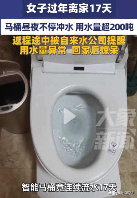 河南洛阳,张女士春节离家返程途中,接到自来水公司电话,称她家用水异常,一天用十几吨水。张女士到家发现,竟是智能马桶在“捣鬼”。原来,她临走前上厕所,冲水到一半就拔了智能马桶电源,导致马桶昼夜流水。17天里,马桶用掉200多吨水,水费840元。张女士后悔不已。 840元,不算天文数字,可要是17天白溜走的水费,估计搁谁身上都心疼。 张女士当时得知这一消息后,车还在高速上,往前开也不是,往回折也不是。 脑子里一片空白,反复跟自来水公司确认,是不是抄错表了。 对方语气很肯定,说后台监测好几天了,每天用水量都超标,再不联系,后续水费还得涨。 她没心思继续赶路,就近下了高速,掉头往家赶,一路上,油门踩得飞快。 家里就她一个人住,春节前特意检查了一遍,所有水龙头都拧得紧紧的,燃气也关了,怎么会用水异常? 越想越慌,甚至开始胡思乱想,是不是家里进贼了,故意放水搞破坏。 好不容易赶回家,推开门,客厅干干净净,没一点翻动的痕迹。 悬着的心稍微放下一点,可刚走到卫生间门口,就听见哗哗的水流声。 那声音,大得吓人,推开门的瞬间,她差点腿软。 智能马桶的水箱,水满了就溢,溢出来的水顺着地面往下流,卫生间门口都积了一层水。 她赶紧冲过去,伸手去关马桶的阀门。 摸了好几下才找到,拧紧之后,水流终于停了。 看着湿漉漉的地面,再想想那笔840元的水费,她抬手就拍自己的大腿。 这时候才猛然想起,临走前的那个早上,她起得急,上了厕所就想赶车。 马桶刚冲了一半,她嫌等得麻烦,直接拔了电源,当时还想着,拔了电源能省电,没想到闯了这么大的祸。 智能马桶这东西,跟普通马桶不一样,断电之后,冲水阀门回不了位,水就会一直流。 她之前根本不知道这点,买马桶的时候,商家只教了怎么用,没说断电会出这问题。 她赶紧联系自来水公司,说自己不是故意浪费水,能不能酌情减免部分水费。 自来水公司也拒绝了,说水表计量没问题,用水是事实,必须全额缴纳。 张女士心想自来水公司监测到用水异常,为什么不早点联系? 要是早一天通知,也能少浪费点水,少花点钱。 这笔840元的水费,到底该由谁来承担?是张女士自己操作失误,还是自来水公司有责任? 张女士和自来水公司的关系,依据《民法典》第656条,供用水合同参照适用供用电合同的有关规定。 也就是说,张女士作为用户,有按时缴纳水费的义务,而自来水公司有正常供水、及时告知用水异常的义务。 自来水公司监测到用水异常后,及时联系了张女士,已经履行了告知义务,水表计量也没问题,所以张女士必须缴纳840元水费,这一点没争议。 张女士和马桶商家的关系,依据《消费者权益保护法》第十八条,经营者应当保证其提供的商品或者服务符合保障人身、财产安全的要求。对可能危及人身、财产安全的商品和服务,应当向消费者作出真实的说明和明确的警示,并说明和标明正确使用商品或者接受服务的方法以及防止危害发生的方法。 智能马桶断电后阀门无法复位、会持续流水,属于可能危及用户财产安全的隐患,商家有义务明确告知张女士。 商家只教了使用方法,没提醒断电隐患,属于未尽到警示义务,存在过错。 张女士可以要求商家承担部分损失,这也是她起诉商家的必胜理由。 依据《供水条例》第24条,用户应当安全用水、节约用水,自行配备的用水设备应当符合国家有关标准。 张女士作为用户,使用智能马桶时,未了解其使用禁忌,随意断电,也存在一定过错,不能完全要求商家承担全部损失,自身也需要承担一部分责任。 这笔水费,张女士和马桶商家都有责任,大概率是双方协商分摊,或者法院判决商家承担部分、张女士承担部分。 很多人用智能家电,都只看怎么用,忽略了使用禁忌,很容易踩坑。 商家为了卖货,也往往只宣传优点,不提隐患,这才导致类似的纠纷频频发生。 大家说,这笔840元的水费,该张女士自己全掏,还是商家承担一部分?你们用智能马桶时,有没有被商家提醒过使用禁忌?