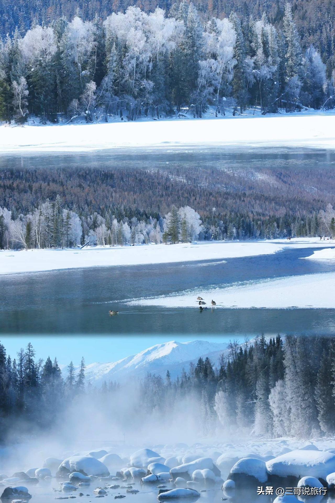 喀纳斯|冬日限定浪漫,我永远为新疆心动 踏入喀纳斯的冬天,才算真正见过人间仙境。漫天飞雪裹着山林,雾凇挂满枝头,湖面凝作剔透冰镜,蓝白交织的世界干净又治愈。 炊烟袅袅的图瓦村落、静谧流淌的河水、被白雪覆盖的山峦,每一处都像上帝精心勾勒的油画,静谧又震撼。没有喧嚣纷扰,只有纯粹的雪景与温柔,一步一景皆是治愈,一眼万年尽是心动。 难怪都说这里是神的自留地,冬日的喀纳斯,清冷又浪漫,来过一次,便会反复爱上这片雪域仙境,值得奔赴所有远方。