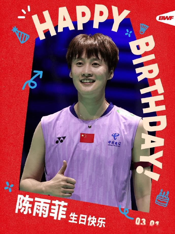 虎扑03月01日讯今日0时,世界羽联官方更新社媒,为中国羽毛球女子单打名将、奥运冠军陈雨菲送上了28岁生日祝福,配文道:“悦己而荣,自在随心,继续闪耀,无畏前行。”