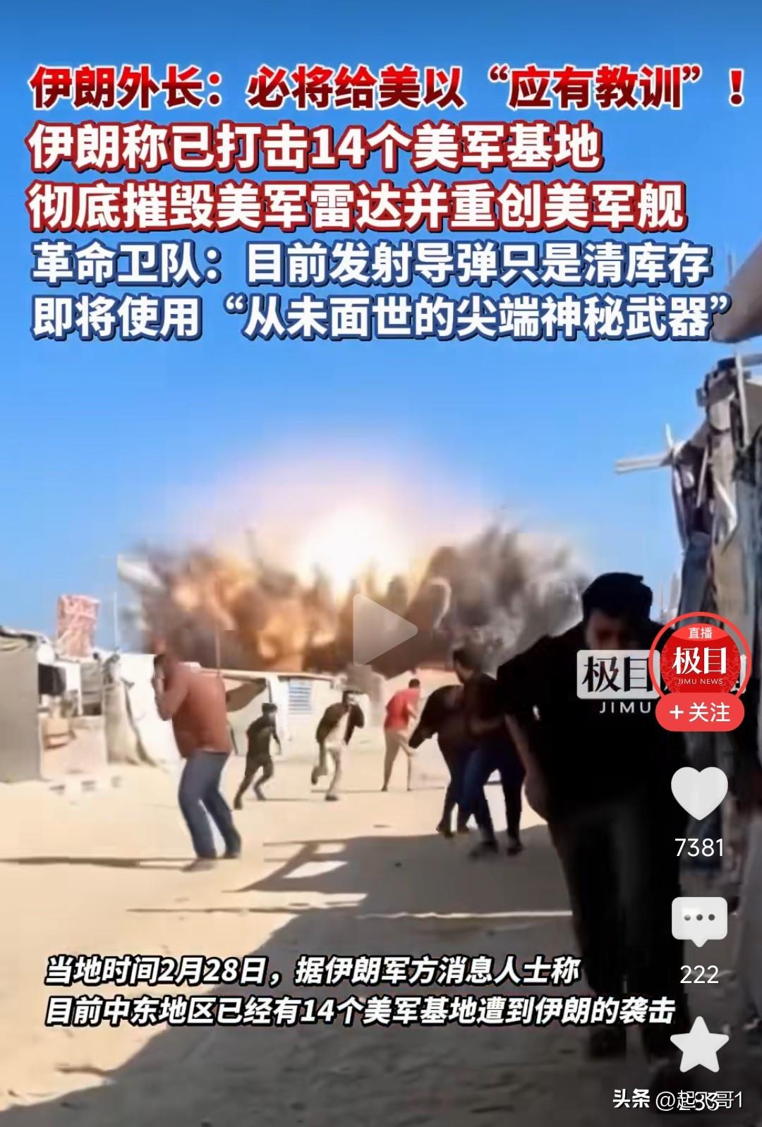 2月28号美国和以色列对伊朗发动先发制人打击,这次战争来的有点快,我的预计应该是3月10左右,没有想到美国和以色列提前下手了,不过伊朗也是有准备的,伊朗外长宣称说,对美以的反击是在清库存,接下来伊朗会用更先进的精密制导导弹对美国本土发动攻击,接下来伊朗还要用尖端神秘武器对美以反击。 伊朗对美国14个军事基地发动了打击,美国没有想到伊朗的强硬,特朗普在发表讲话让伊朗放下武器,这不是空口喊白话吗?伊朗怎么可能放下武器,我看是特朗普老糊涂了。伊朗不是好惹得,美以对这次战争难的收场。 伊朗不是软柿子,伊朗政府军和胡塞武装都要给美以反击。 美以之间合作,美国还想让以色列先打伊朗,美以之间如果有分歧,伊朗这次战争就好打了。随着时间往后看吧。