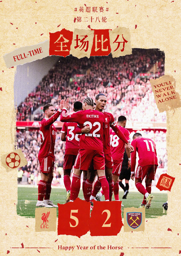 英超联赛第28轮,利物浦坐镇安菲尔德球场迎战西汉姆联。