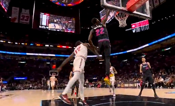 比赛的第四节,威金斯抢断快攻滑翔劈扣打进2+1,热火领先到8分。