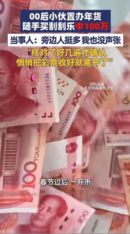 这运气绝了!近日,山东聊城,一小伙春节前去置办年货时,随手买了两张20元的刮刮乐,刮第一张时没中奖,没想到将第二张刮开时,竟中了100万元!他看着那一长串数字,仔细核对了好几遍才确认!网友:羡慕哭了! 这位中奖的小伙是聊城当地一名00后创业青年,事发地点在东昌府区万达广场,他当时只是正常采购春节用品,路过彩票柜台时觉得“中国红”款式喜庆,才花40元买了两张试试手气。他本身没有长期大额购彩的习惯,更没有专门研究过所谓中奖技巧,全程就是图个新年好彩头,完全是无心之举。 第一张刮开没有中奖,他没有任何失落,很自然地拿起第二张。当看到百万奖金的数字时,他第一反应是不敢相信,在人来人往的商场里,他强压着激动,反复对照票面规则核对,确认无误后才悄悄收好彩票离开,没有声张,全程十分低调。 正月初八体彩新春开市第一天,他就赶到体彩中心完成兑奖,拿到奖金后他表示,不会因为这笔意外之财改变生活节奏,这笔钱会妥善存起来,用于扩大自己的创业经营规模,继续踏实做事。 这件事在网络上发酵后,评论区几乎全是羡慕的声音,不少人分享自己常年买刮刮乐只中小奖、甚至从不中奖的经历,对比之下更觉得这位小伙的运气可遇不可求。也有网友提醒,看看就好,千万别跟风冲动消费。 从官方数据来看,20元面值的即开型彩票,整体中奖率仅有20%左右,百万头奖更是数百万张才有一个,属于极低概率事件。这类大奖的诞生,完全是随机概率的结果,不存在所谓技巧和规律,更不可能被普通人刻意复制。 我国彩票的核心定位是公益,每一张票的部分资金都会纳入公益金,用于全民健身、扶弱济困等公共事业。购彩本质是小额娱乐和公益支持,不是理财手段,更不是致富途径。 现实里有不少人因为沉迷购彩,超出经济能力盲目投入,最后影响家庭生活和个人工作,这样的案例并不少见。羡慕别人的好运很正常,但我们更要保持清醒,把购彩当作偶尔的小乐趣,量力而行。 真正能给生活带来稳定改变的,从来不是一夜暴富的运气,而是日复一日的努力、认真工作和理性规划。意外之财是生活的惊喜,脚踏实地才是人生的常态。 各位读者你们怎么看?欢迎在评论区讨论