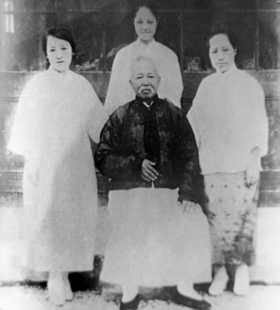 这张照片是康有为晚年与三个女儿的合影,拍摄于20世纪20年代的青岛,居中端坐的是晚年康有为,环绕在他身边的三位女性,是他的女儿(从左至右分别为康同薇、康同复、康同璧) 康有为非常重视子女教育,尤其是对女儿们的培养。他的几个女儿都接受了良好的教育,成为近代中国第一批知识女性。