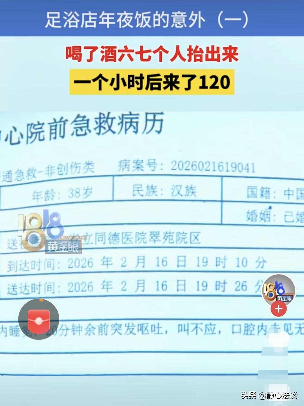 “冷漠到可怕!” 杭州,男子参加足浴店老板组织的除夕聚餐,酒喝到一半,突然晕倒,结果在场老板同事没一个人当回事,直接把男子抬回店里,躺了一个多小时后发现不对劲,才想起叫救护车,可为时已晚,人最终没救回来。家属不干了,要求赔偿250万,店家却只肯出20万人道主义补偿,一分钱不愿多给,双方多次协商无果,家属维权遭刁难,至今僵持不下! 谁能想到,本该万家团圆的除夕夜,38岁的肖某,却再也回不了家了。 前一天还在辛苦上班,想着多赚点加班费,一顿老板组织的聚餐,人说没就没了。 更让人心寒的是,他晕倒后老板同事没一个人管,一个多小时后才拨打120就医,家属悲痛欲绝,店家却直接甩锅。 2026年除夕,家家户户都在团圆吃年夜饭,肖某本来想回家陪老婆孩子,结果老板说大家一年到头辛苦,组织员工一起聚餐过年,算是团年饭。 老板开口、同事也跟着劝,他抹不开面子,觉得强走扫兴,只能留下来参加。 酒桌上气氛热闹,过年了同事们敞开了喝,劝酒声一轮接一轮,你敬一杯我劝一盏。 肖某性子实在、不会拒绝,别人劝酒他就喝,没一会儿就喝了不少,脸色慢慢变得惨白。 喝到一半,肖某突然身子一软,直挺挺地栽倒在地上,当场就失去了意识。 在场七八个人,全是店里老板和同事,没有一个人第一时间上前查看、摸脉搏、听呼吸,更没有人立刻拨打120。 有人随口说“就是喝多了,睡一觉就没事”,还有人怕麻烦、怕扫了大家的兴,说别小题大做。 几个人七手八脚把肖摩托抬回足浴店休息室,往沙发上一扔,就彻底不管不问了。 这一躺,就是整整一个多小时。 期间有人路过、还笑他不担酒,全都没当回事,没人关心他是不是还清醒、有没有危险,就任由他躺在那里。 直到有人发现肖某脸色发紫、身体越来越凉,怎么叫都没反应,这才彻底慌了神,手忙脚乱拨通120。 救护车很快赶到,医护人员现场紧急抢救,一路加急送往医院。 可一切都太晚了,最佳抢救时间被白白浪费,经过医院全力抢救,38岁的肖哥抢救无效,永远离开了家人。 家属连夜赶到医院,看到遗体那一刻直接崩溃。原本完整的一个家庭,在除夕这天直接塌了顶梁柱。 肖某今年38岁,没什么文化,也没一技之长,只能在足浴店靠力气和手艺挣点辛苦钱。 家里上有老下有小,一大家子的吃喝开销、老人看病吃药、孩子上学学费,全都压在他一个人肩上。 他为人老实本分,干活勤勤恳恳,从来不敢偷懒,就盼着过年期间多上点班、多拿点加班费,日子过得紧巴巴,却一直咬牙硬扛。 后来家属才知道,肖哥晕倒后,足足被耽误了一个多小时才送医。 但凡当时有人有点常识、有点良心,第一时间叫救护车、及时送医,人很大概率能救回来。 家属不能理解,人都喝的不省人事,老板同事没一个人管,他们的冷漠、侥幸和不作为,直接害了肖某。 悲愤之下,家属找到足浴店讨要说法,综合肖某未来十几年收入、家庭抚养开支、精神损失等,提出索赔250万。 这笔钱不是讹人,是要一个公道,也是给老人孩子留一条往后的活路。 可足浴店方面态度极其冷漠,肖某在医院抢救了7天,花了20多万,都是足浴店垫付的。 老板也觉得委屈,好心为员工聚餐,没想到摊上这事。 他一口咬定,肖某是成年人,自己喝酒晕倒,和店里没有直接关系,只愿意拿出20万,当作人道主义补偿,多一分都不肯出。 《民法典》第1198条:宾馆、商场、银行、车站、机场、体育场馆、娱乐场所等经营场所、公共场所的经营者、管理者或者群众性活动的组织者,未尽到安全保障义务,造成他人损害的,应当承担侵权责任。 足浴店老板是除夕聚餐的组织者,属于法律上的安全保障义务人。 肖某晕倒昏迷、失去自理能力,老板和同事明知他处于危险状态,却不打120急救、不看护。 直接抬回店里放任躺1个多小时,完全没尽到提醒、劝阻、照顾、及时送医的安全保障义务。 延误抢救直接导致死亡结果扩大,必须承担相应赔偿责任,不能只拿20万人道主义补偿就甩锅。 双方多次协商,次次谈不拢,店家不仅拒不承担责任,反而开始百般刁难维权的家属。 家属实在没辙,只能守在足浴店大堂,想要一个合理说法。 结果店里直接故意断水断电,还派人嘲讽、驱赶家属,把失去亲人的家属逼到走投无路。 事情闹到现在,依旧僵持在原地,没有任何调解结果,家属的公道,依旧遥遥无期。 对于,你怎么看呢? @静心法谈 学法辨是非,慬法不吃亏。