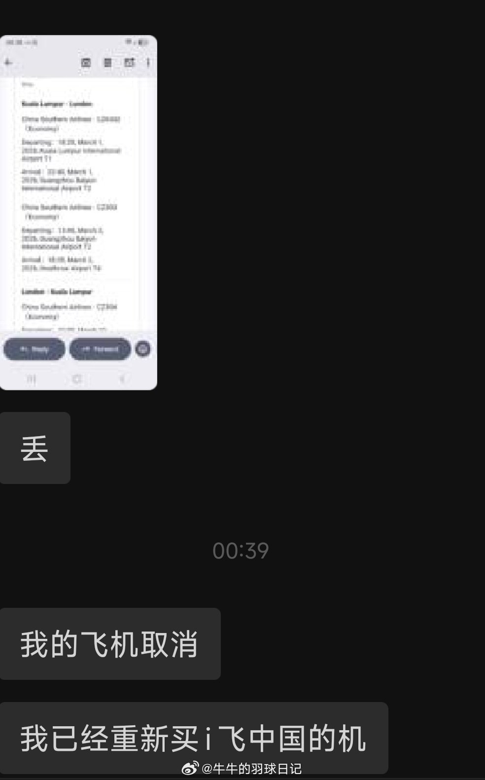 同样,马来西亚前往英国的航班也被取消,参赛人员只能重买机票,中转其他国家前往英国参加全英赛。