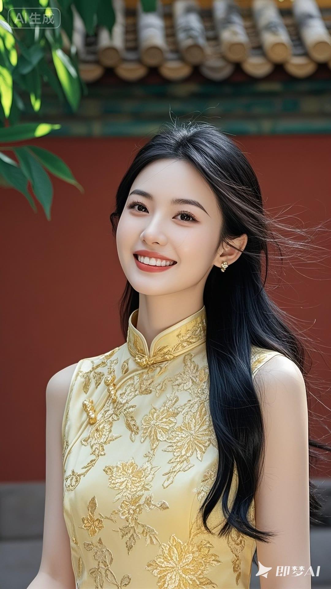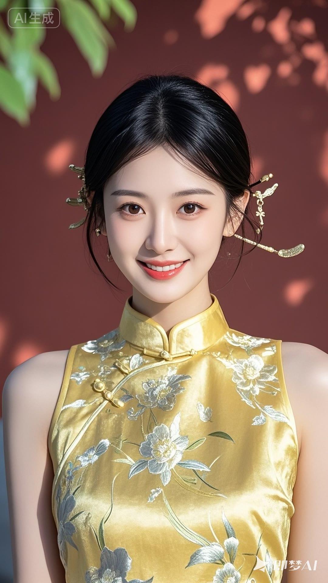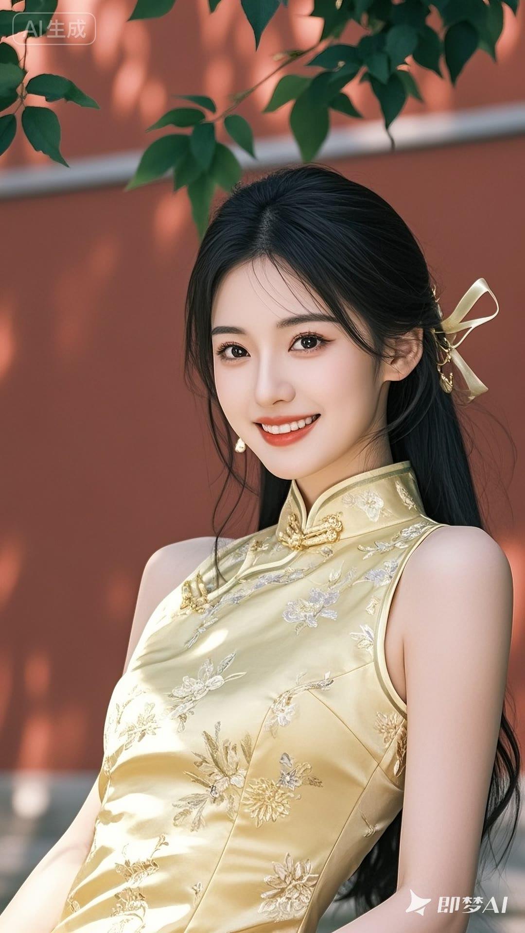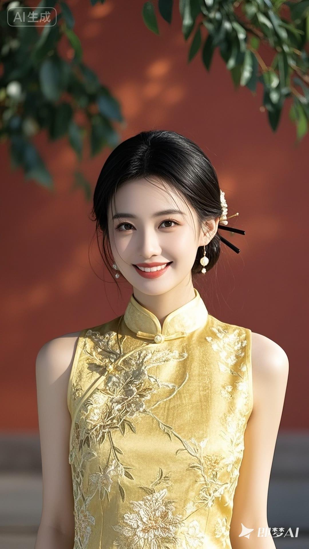 优雅旗袍少女,笑靥如花,古典与现代的完美结合。