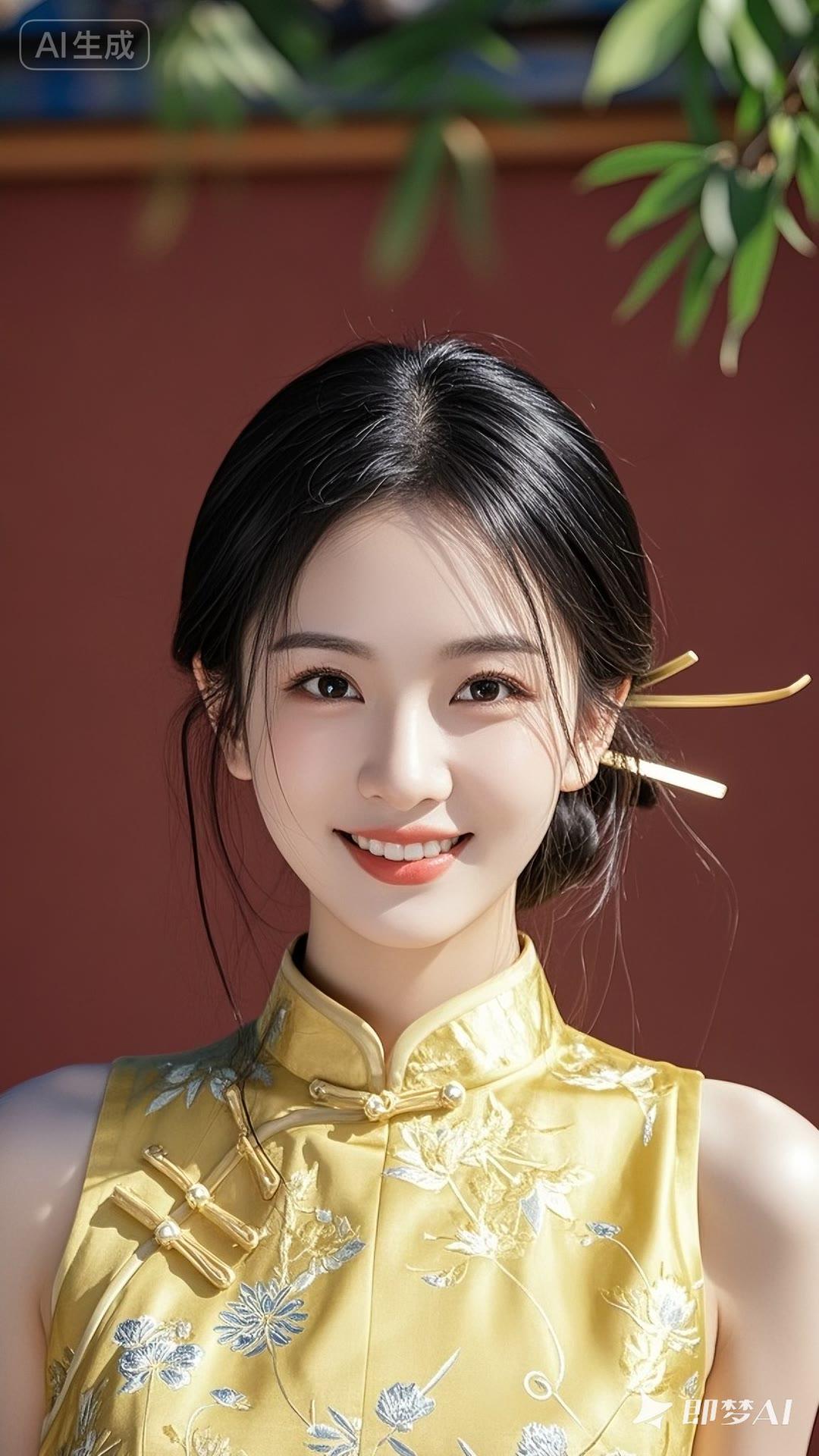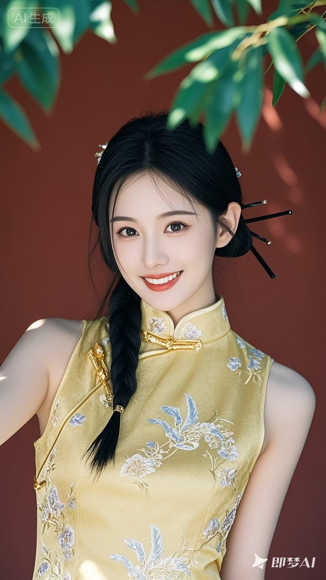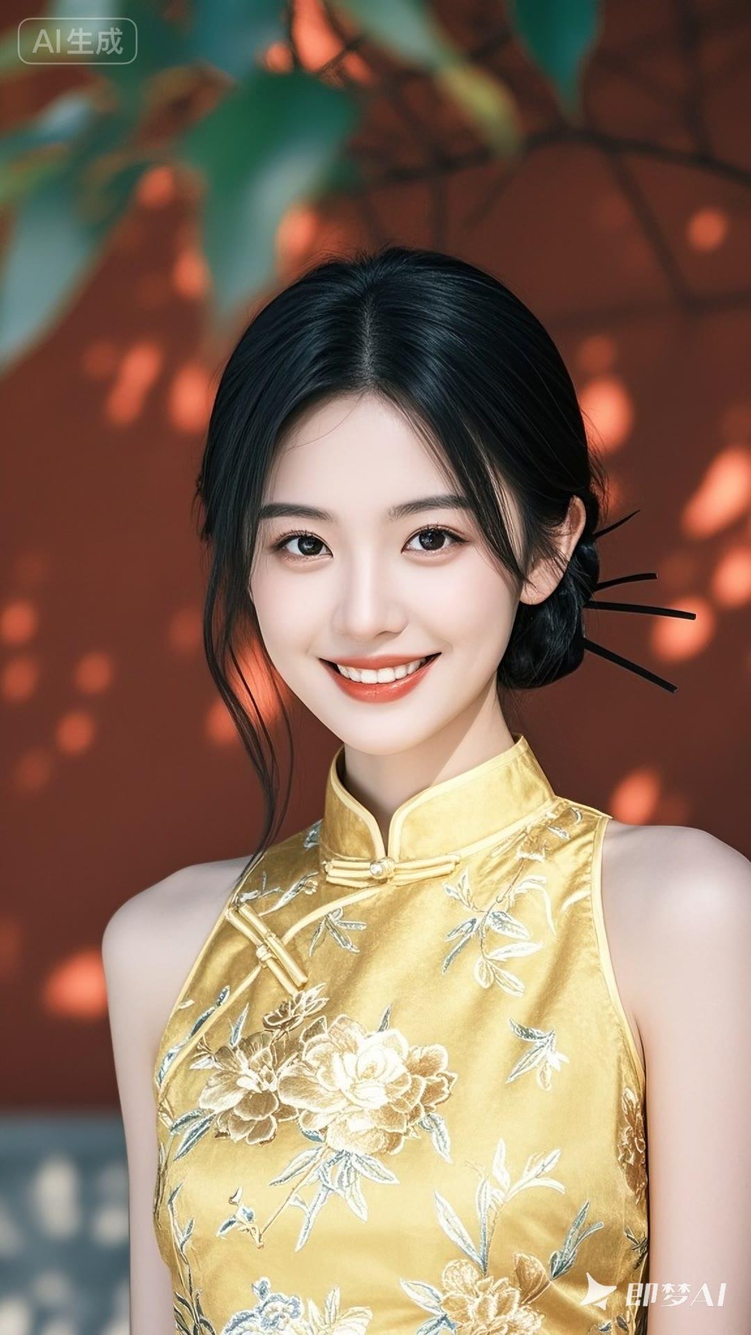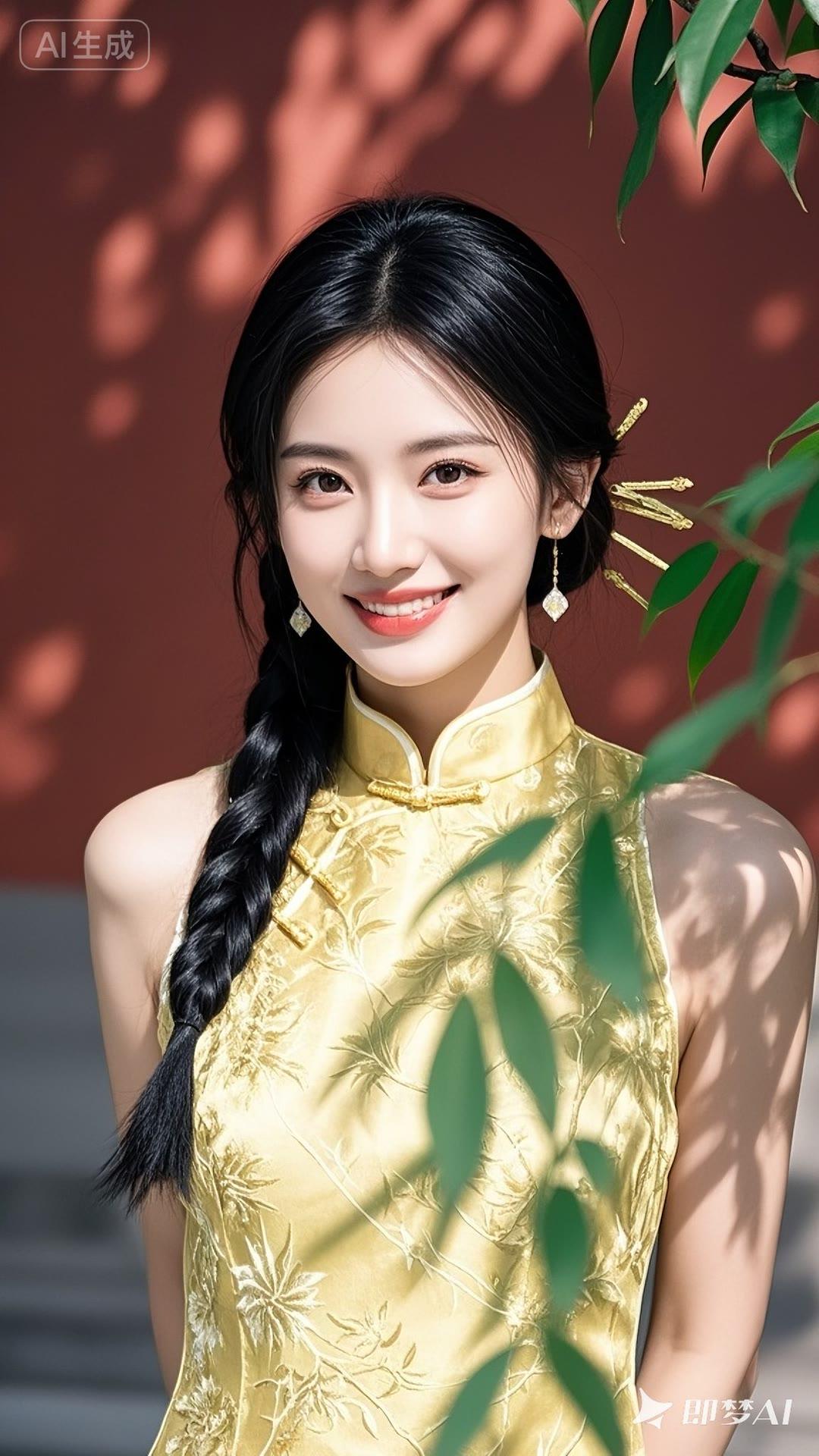 优雅旗袍少女,笑靥如花,古典与现代的完美结合。