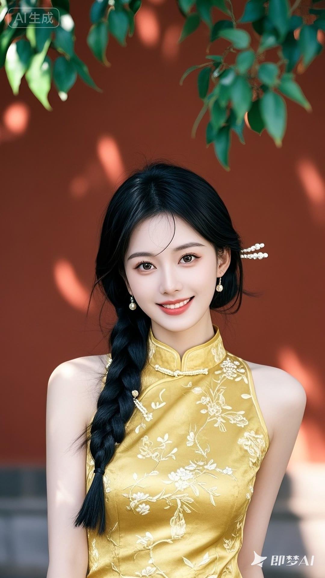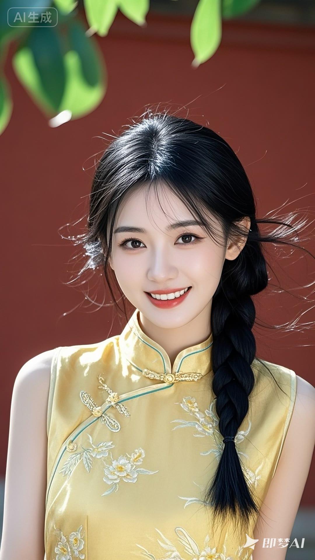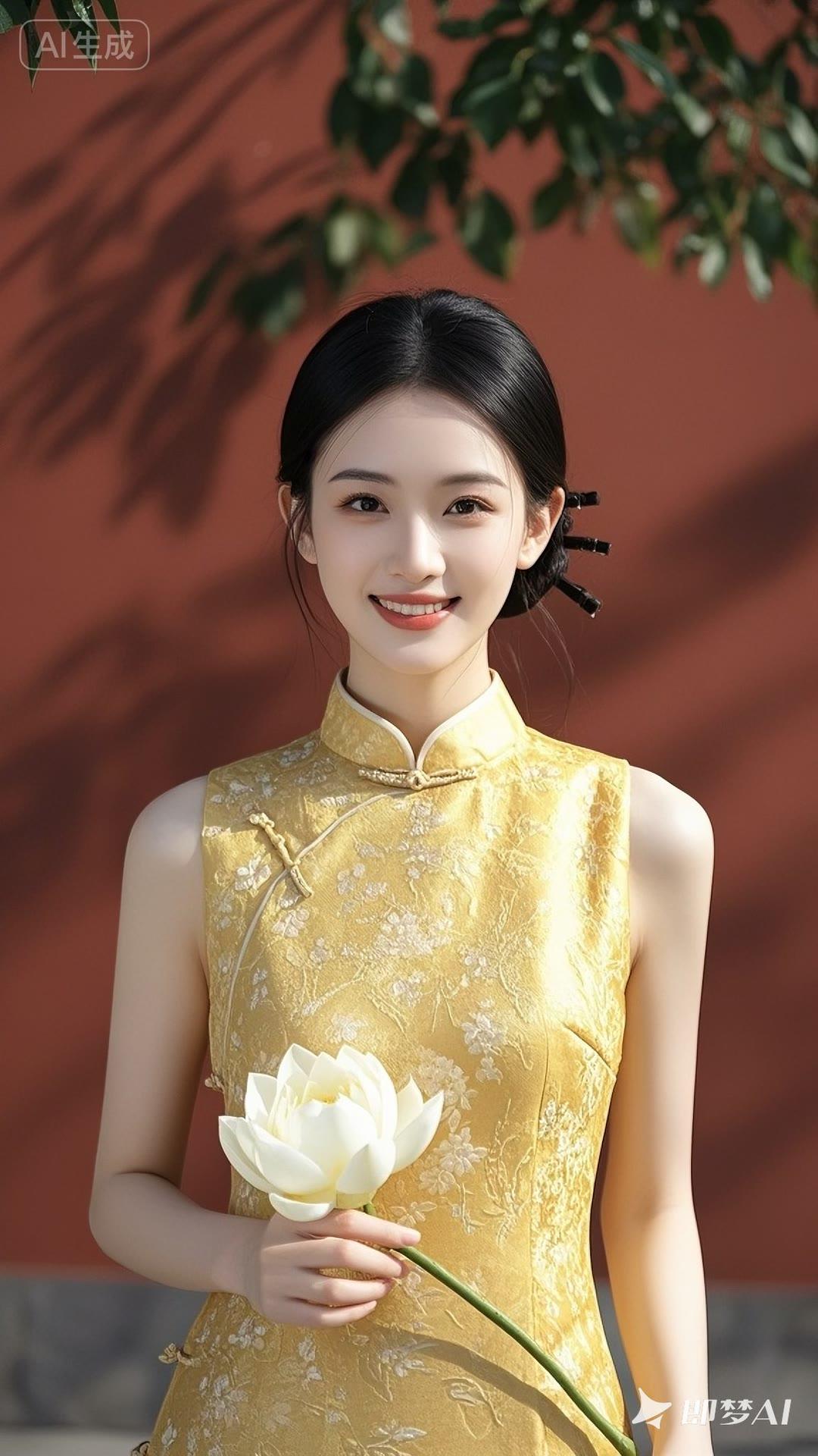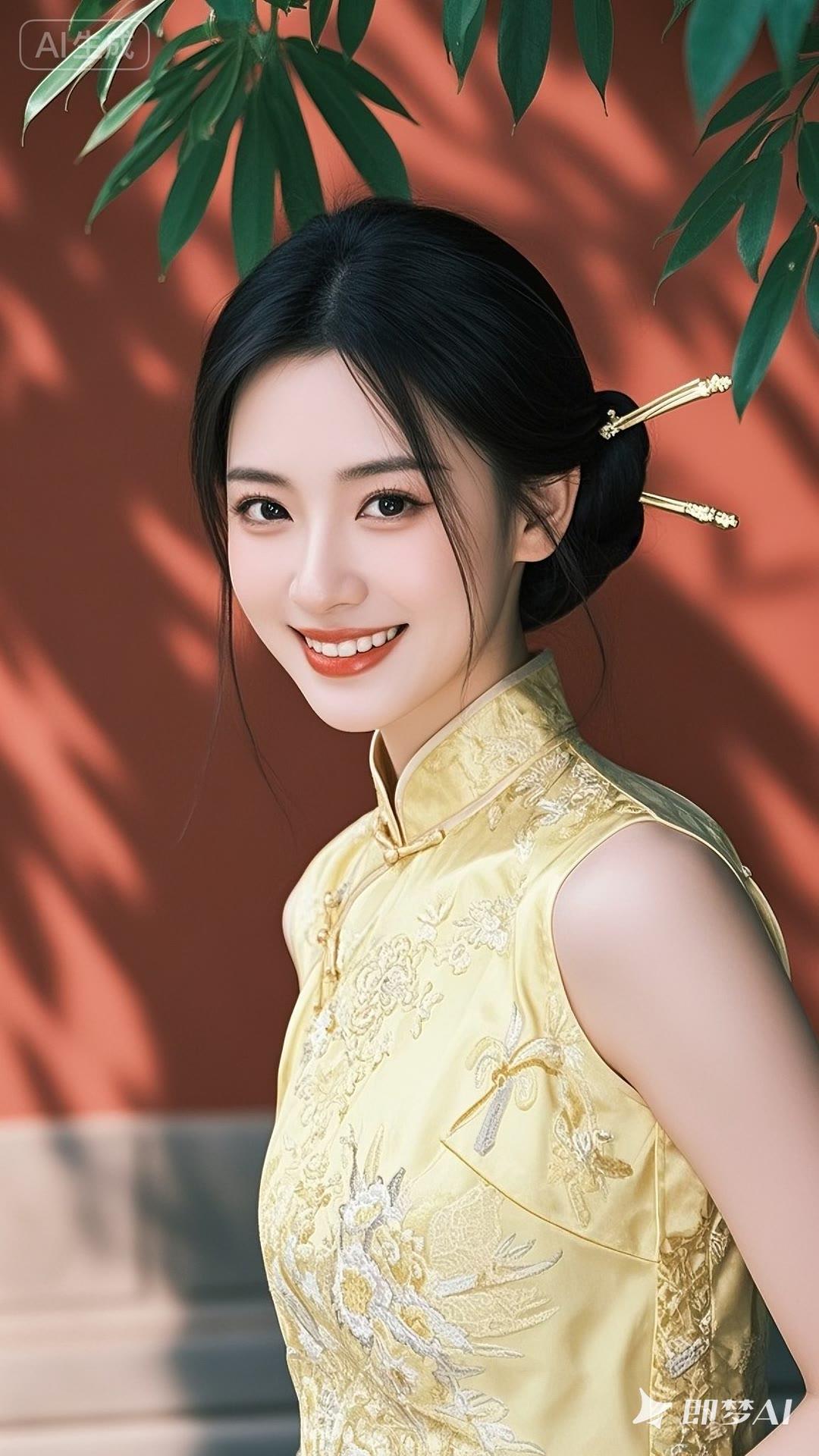优雅旗袍少女,笑靥如花,古典与现代的完美结合。