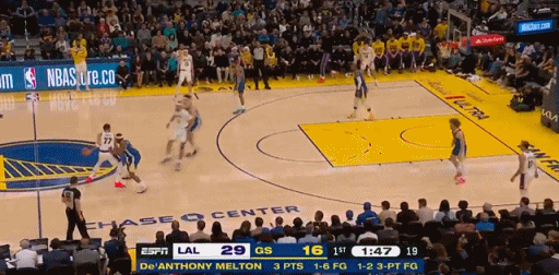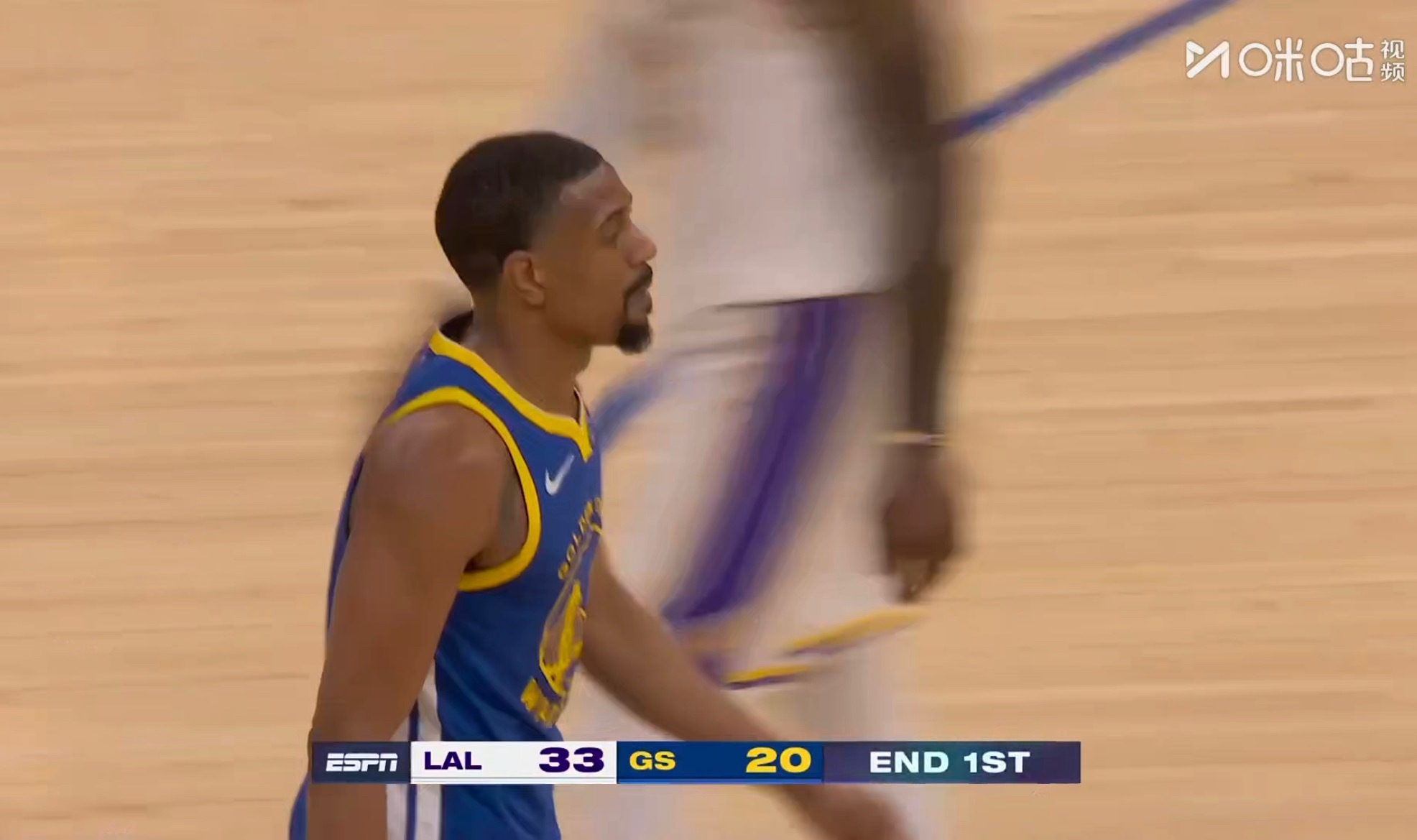 第一节,湖人领先勇士13分。 湖人vs勇士 湖勇大战
