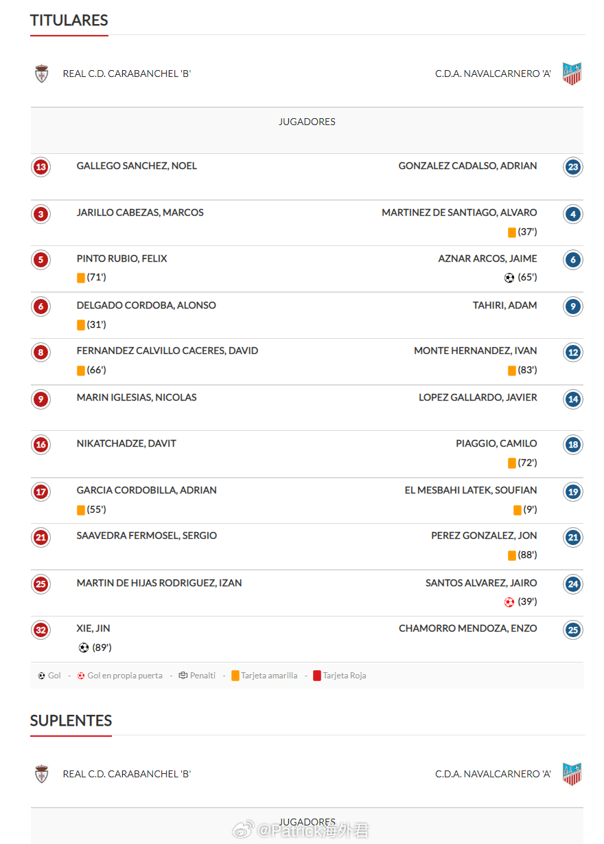 谢晋 首发建功。2月28日,西班牙马德里U19自治区联赛(3)第2组第22轮,皇家卡拉万切尔U19B队主场3比3战平,谢晋(2009)首发出战,第89分钟进球为球队扳平比分。截至本轮,谢晋出场16次、首发10次,进9球;球队取得4胜8平10负、进失球45-55,暂列积分榜第16位。