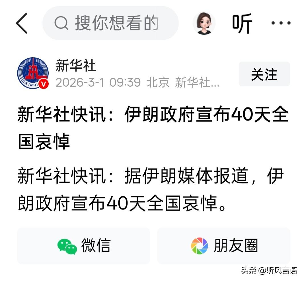 伊朗最高领袖哈梅内伊已经离世! 继以色列官员和特朗普都宣布哈梅内伊已死后,伊朗媒体也证实其已被害。伊朗政府还宣布40天全国哀悼,看来此事为真,这是此次美伊开战的核心事件! 美以猝不及防的空袭,证明其情报积极准确,伊朗内部也被渗透。或许哈梅内伊太自信了,美伊开战箭在弦上一触即发,哈梅内伊不会不知,但为什么没有及早做好安全措施?或又有内奸?无论如何不得不承认,美以的情报极其准确! 不过,伊朗不是委内瑞拉,伊朗高层是一个团体,哈梅内伊的死不会瓦解教士政权,接班人或许早已选好,如何对付伊朗教士政权这个团体,才是美以头疼的事!