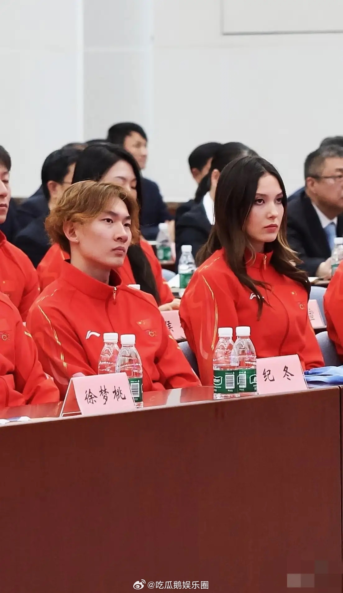 谷爱凌从米兰赶回北京,参加米兰冬奥会2026中国体育代表团表彰大会,苏翊鸣与谷爱凌一起参加表彰大会彼此不熟,都挺疲惫的,快睡着了,眼皮往下耷拉!