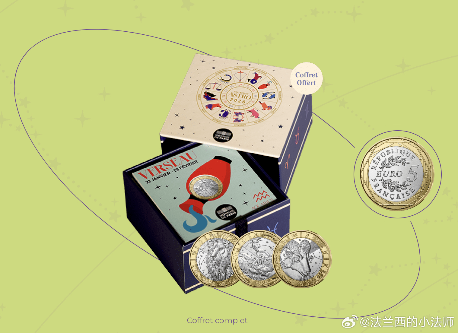 有几个朋友一直想要「十二星座」欧元纪念币。那就顺道再开一次团!速上车!♈️♉️♎️♐️♒️♏️♋️♍️♓️♌️♊️♑️巴黎造币厂出品,面值5欧!无论自己收藏还是赠予亲朋,都是极好的也特别有意义的,我粉丝里真有好几个许愿成真的!把图1 用绿色聊天软件扫一扫即可,如果支付不了就下载APP用支阿宝付,下周就能到国内!秒发!