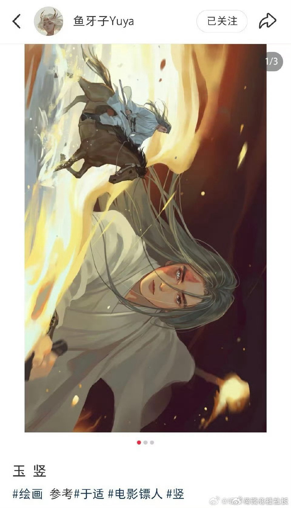 于适人生角色又加一 于适版竖,直接炸穿同人圈!🔥自带侠客风骨的眉眼,清冷又凌厉的气质,完美贴合原著神韵,让平时约稿要排大队的画手太太们集体“失控”,疯狂产出神仙同人。绝美画作多到九宫格都塞不下,每一幅都是名场面!这份颜值与适配度的双重暴击,谁看了都要被惊叹到!镖人于适yosh