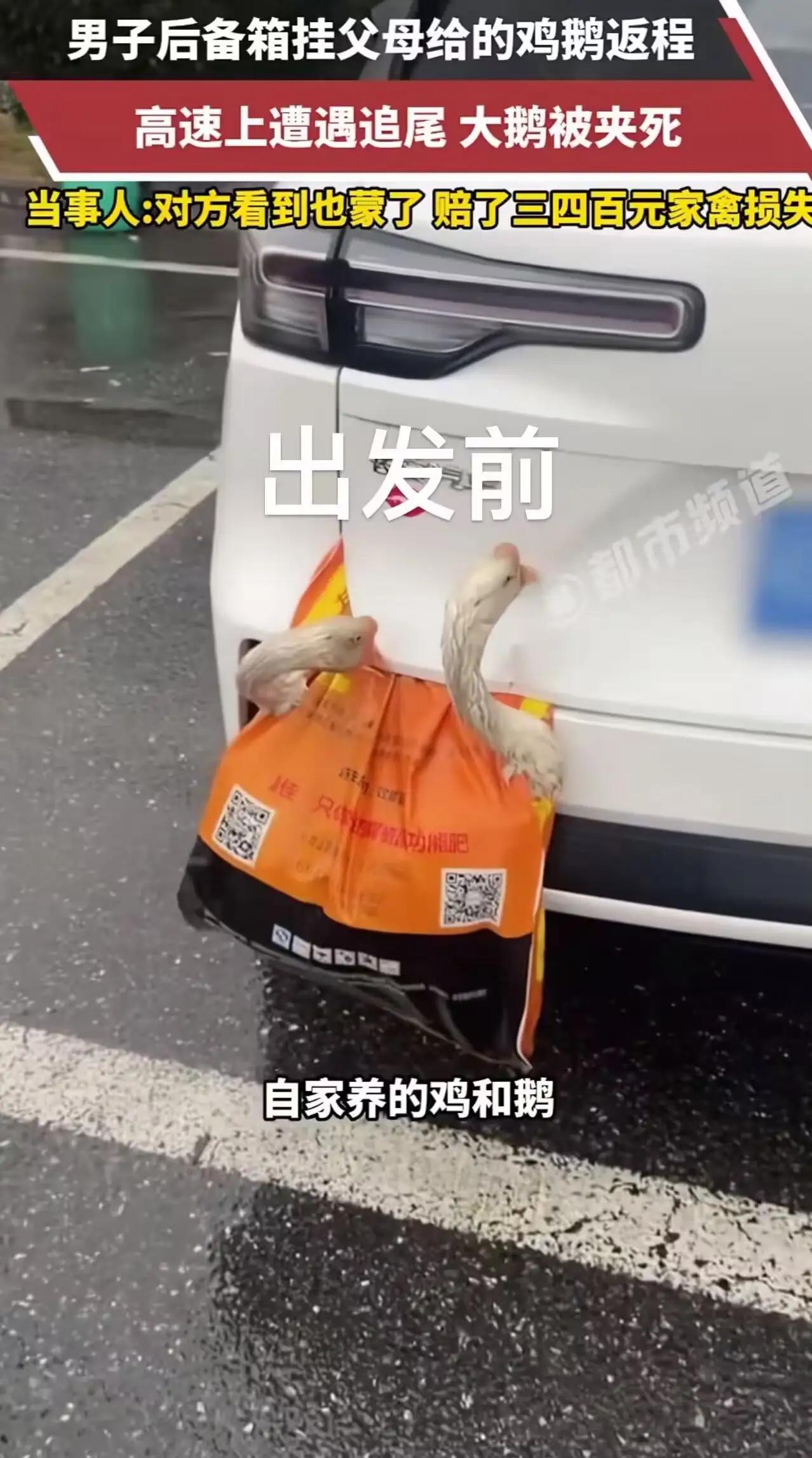 本以为两死一伤,结果是"俩菜一汤"!赔了钱,鸡鹅到底归谁?人生安全才是第一 "本以为两死一伤,结果是'俩菜一汤'!"湖北男子返程高速遭追尾,后备箱外挂的父母爱心鸡鹅当场殒命,对方爽快赔了三四百元,可全网吵翻:钱到手了,这鸡和鹅,到底该归谁? 这不是普通的家禽,是父母起早贪黑喂大的土货,是塞满后备箱也装不下的牵挂。男子怕闷坏,特意挂在车尾透气,本想把家乡味平安带回城里,没成想一场追尾,活蹦乱跳的鸡鹅瞬间没了气息,大鹅还死死卡在两车中间,画面又心酸又好笑。 后车司机全责,赔偿干脆利落,可这桩"民生悬案"难住了所有人。有人说:赔了钱就是买下来,鸡鹅该归肇事者;有人反驳:这是父母的心意,赔的是损失,不是买断所有权,凭啥不能带走? 法律说得明白:赔偿是弥补损失,没约定归属,残值依旧归原主。可网友更在意的不是法条,是那份藏在鸡鹅里的乡愁。男子最终带走了家禽,不愿浪费父母的一片心意,这波操作戳中无数打工人的心。 比起鸡鹅归属,更暖的是父母的反应:得知意外,第一句不问家禽,只问人有没有事。后备箱里的土特产会变质,家人的牵挂永远滚烫。 一场小事故,笑翻全网,也照见最朴素的人间温情。钱赔了,心意不能丢,这才是最实在的答案。 评论区聊聊:你觉得赔了钱,鸡鹅该归谁? 你返程时,爸妈给你塞过什么"硬核特产"?