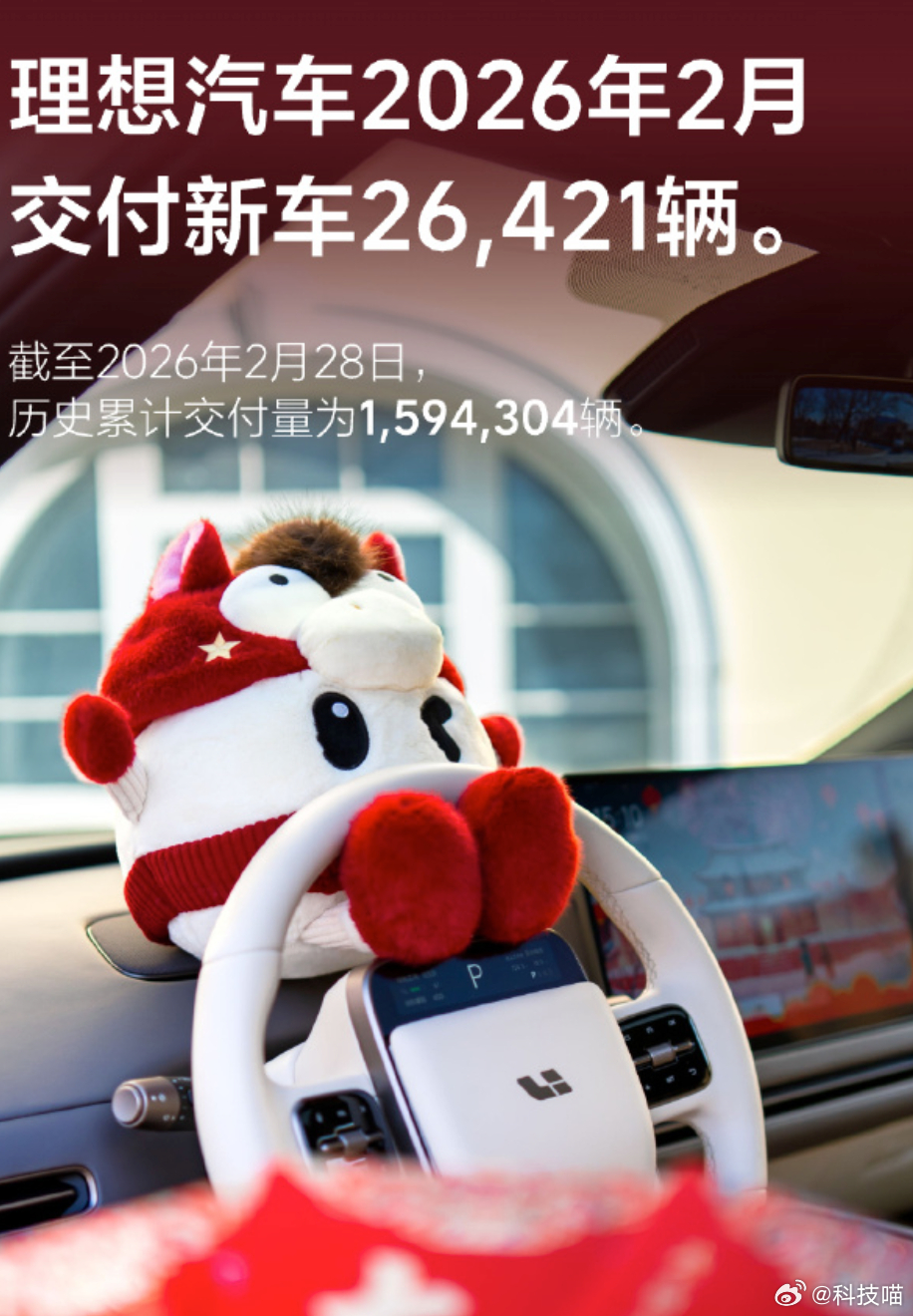 多家车企公布2月交付量1 零跑 28,067辆2 理想 26,421辆3 小米 >20,000辆 4 极石 1,298辆