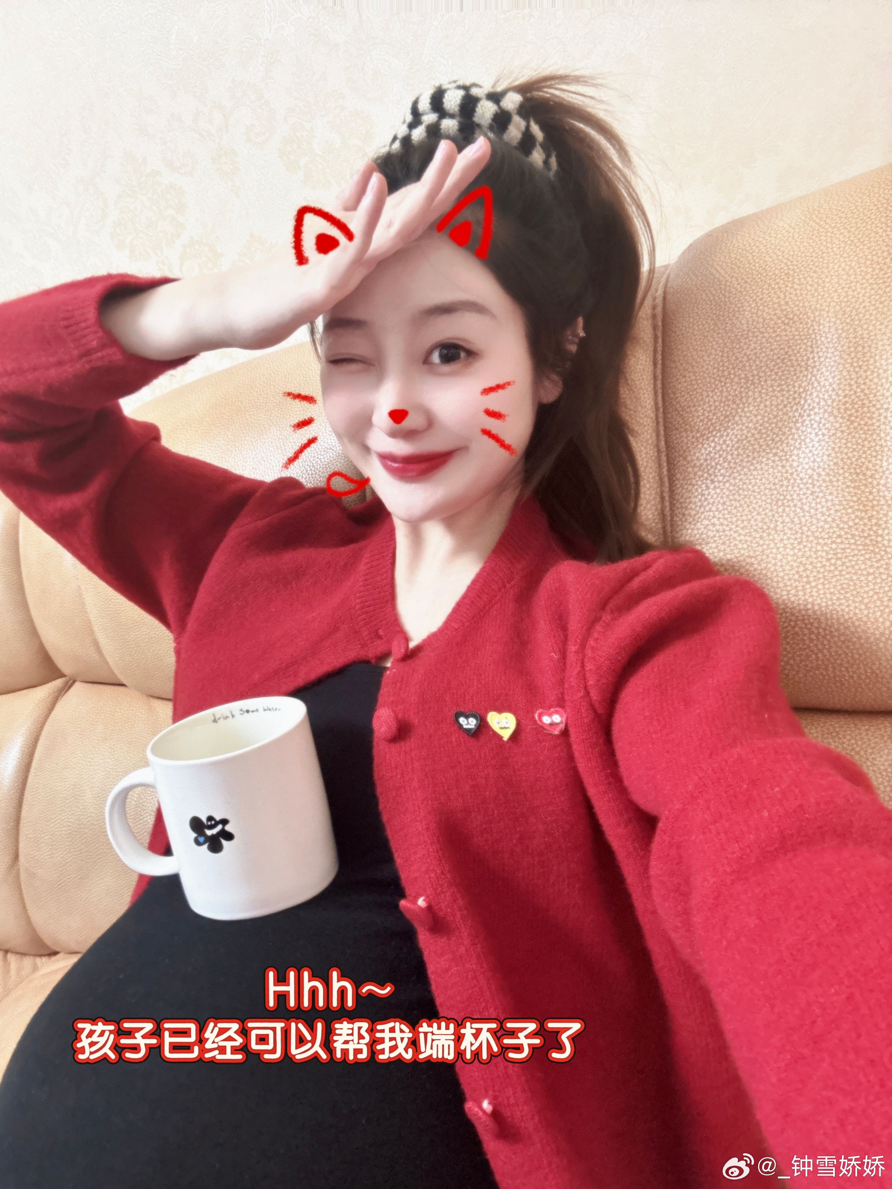 36岁程晓玥晒二胎孕妇照,挺着肚子坐在海边沙滩上,太拼了!第二次怀孕明显胖了不少