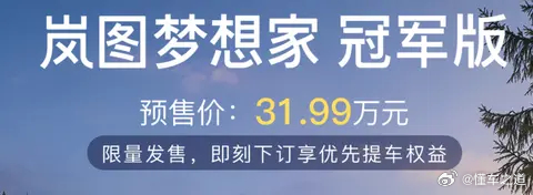 懂车之道讯 懂车之道快讯,3月1日,岚图汽车宣布,岚图梦想家冠军版开启预订,预售