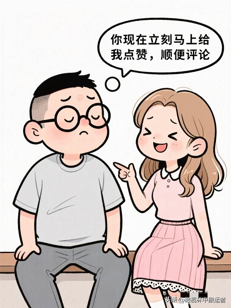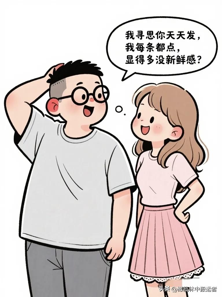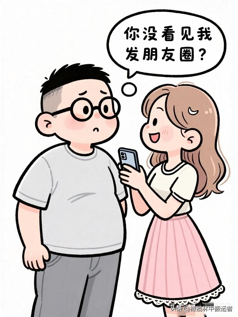 搞笑漫画:老婆发一条朋友圈,配张年后自拍,文案:“新的一年,做更好的自己。”五分钟后看老公没点赞。老婆:“你没看见我发朋友圈?”