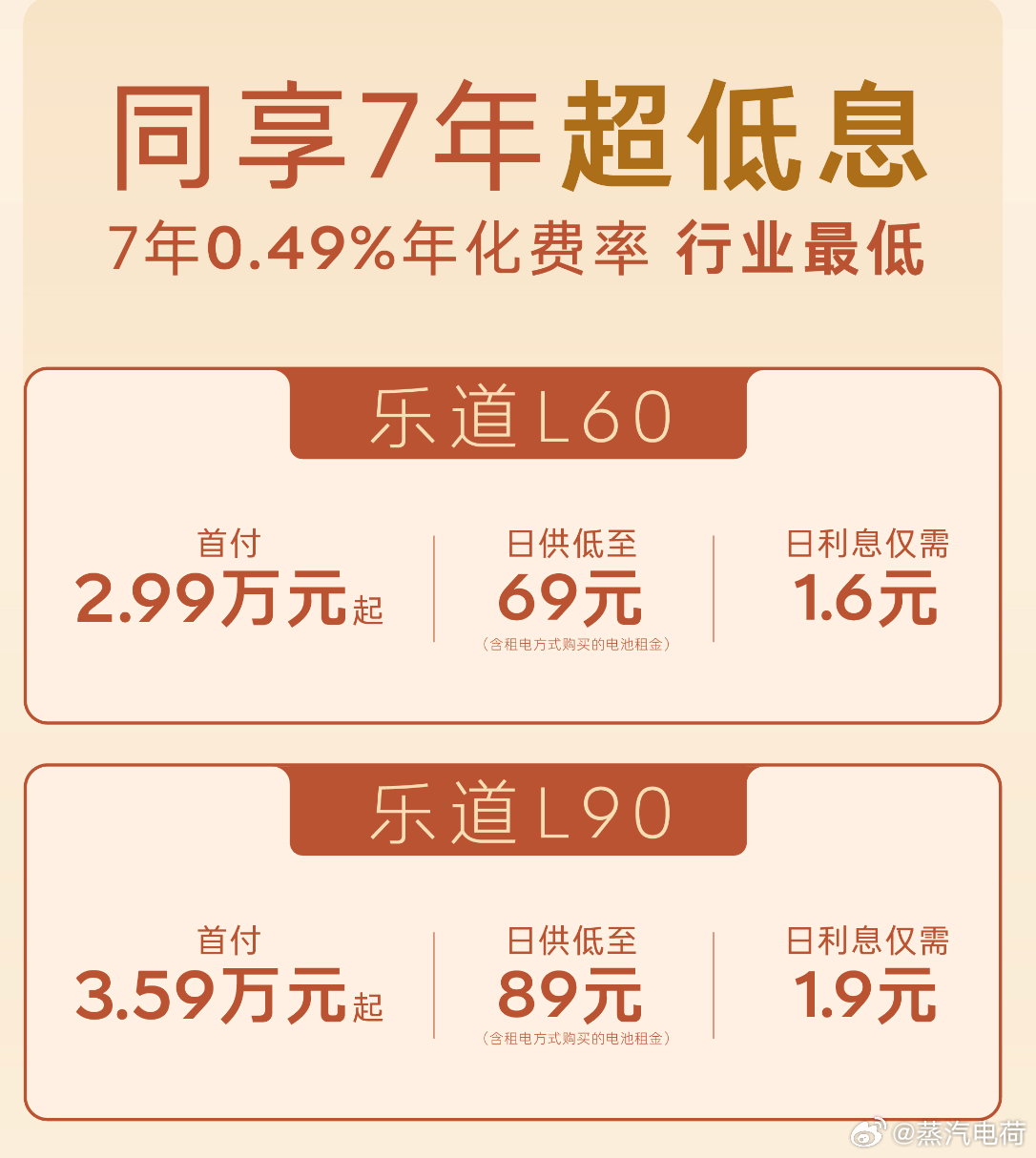 今年家用车新车的促销方式,基本上就是这样了:补购置税、超低息。购置税优惠从之前10%-->5%,上限最高定在1.5万,就是少补贴了1.5万。乐道这次的政策有意思的事,“租电”全额补、整车购买补的少。在这个政策出来之前,已经提车的车主,补贴8万积分(相当于8000块),政策厚道且务实。