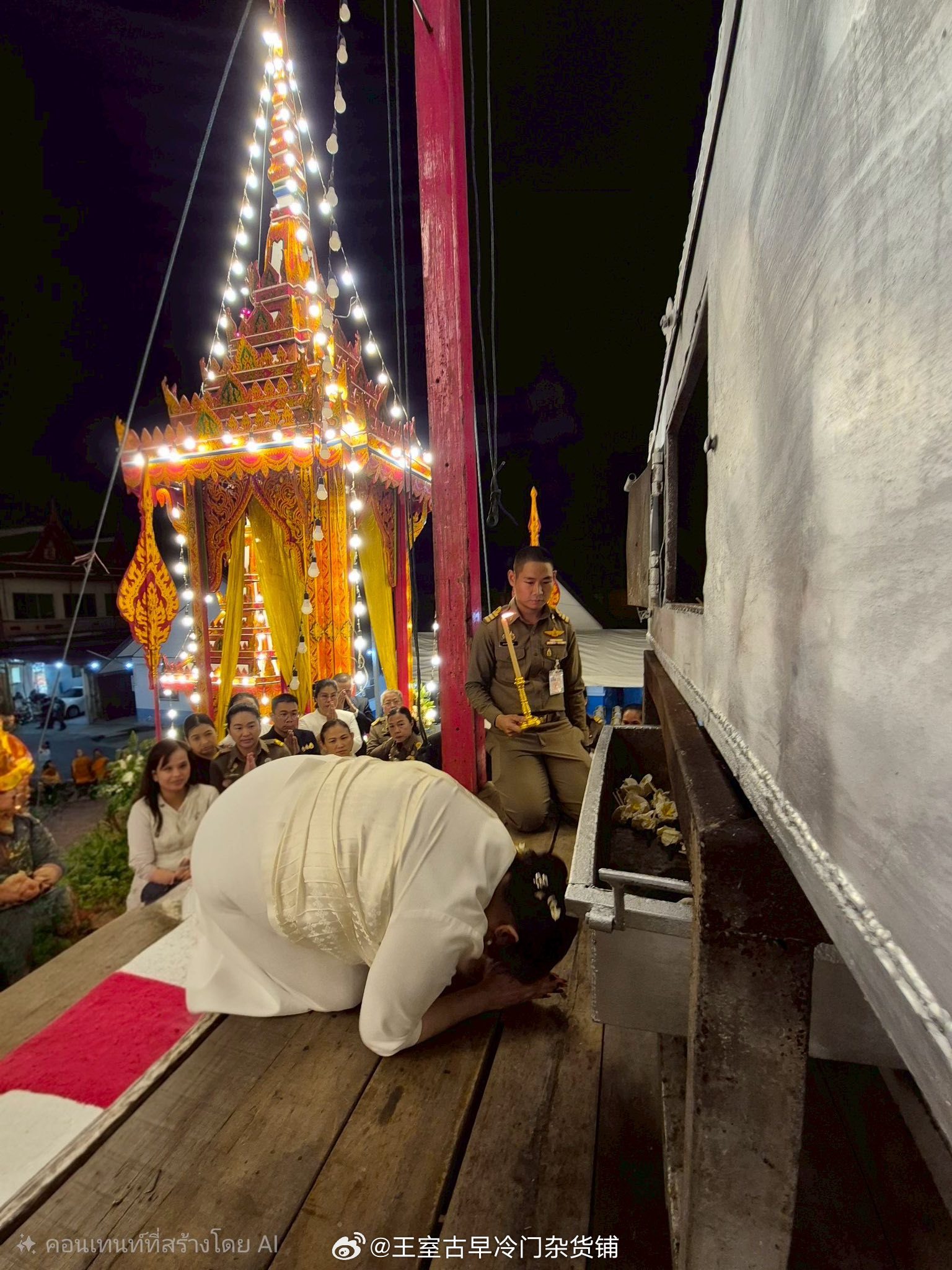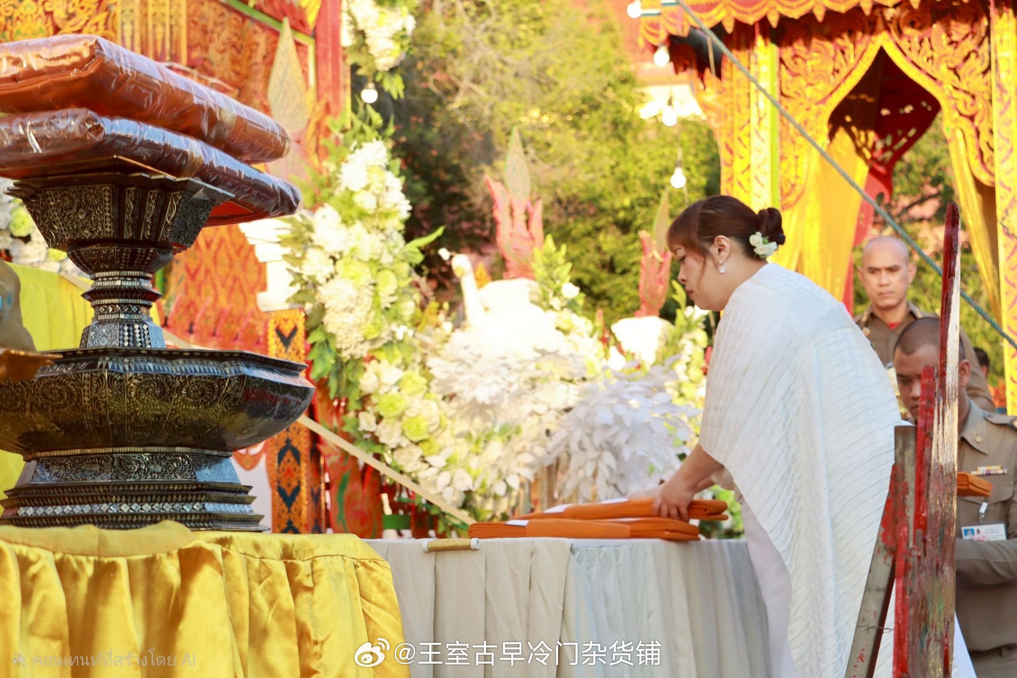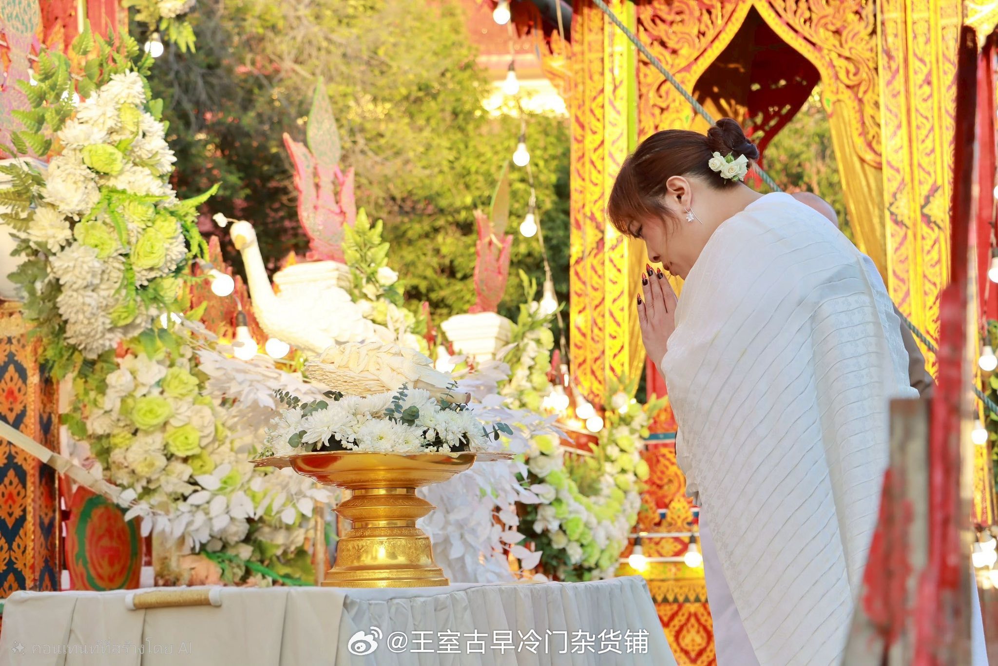 王室王室泰国王室诗丽帕 2026年2月28日,诗丽帕在大城府参加一位高僧的葬礼,这个火葬台好漂亮啊那个,我一直想说,暹罗人是有审美的,而且他们的审美品味很好看红唇姐就知道,衣品在全世界的王室圈里都是翘楚暹罗人虽然喜欢扇巴掌扯头花啥啥的狗血剧情,但是他们的审美真的不“狗血”,尤其是花艺自成一套,日常生活里他们做出的好多东西都很好看,品味不俗,文莱脚盆等等那些王室根本不能比