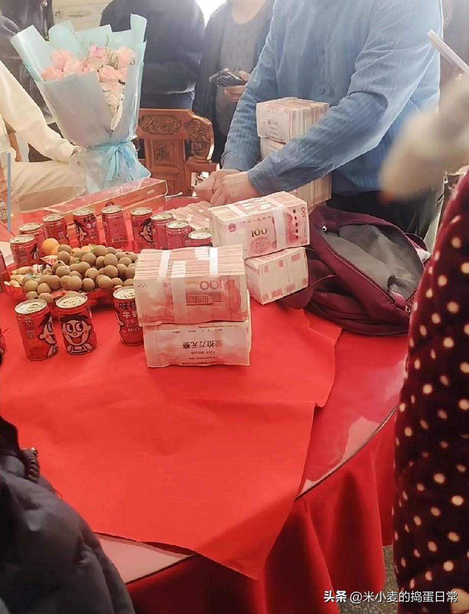88万彩礼!表妹订婚现场现金堆成山,我却替她捏了把汗 今天表妹订婚,一桌子现金看得我眼晕。 我叔是矿老板,男方家也不差,光标准彩礼就88万,加上杂七杂八的开销,直接干到110万。桌上的红票子一捆一捆码得整整齐齐,旁边还摆着旺仔牛奶和桂圆红枣,寓意早生贵子。 我妈说,在我们老家,就算你拿得出88万彩礼,要是没别墅、没商铺、没好车,照样娶不到媳妇。除非是自由恋爱,什么都好说。 妹夫倒是挺勤快,年纪轻轻就接了家里的产业,男方妈妈还是我姑的发小,知根知底。全家上下对这个女婿都赞不绝口,说终于了了一桩心事。 可我看着那堆钱,心里却有点发沉。这哪是订婚啊,分明是两家人的资产重组。爱情在这些数字面前,显得那么单薄。 真不知道是该恭喜表妹嫁得好,还是该心疼她被这些数字绑架了一辈子。