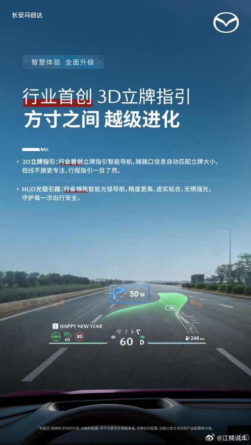 MAZDA EZ-60迎来首次OTA升级,智能体验直接拉满!开车最怕路口走错?这次升级的裸眼3D-HUD给出行车新思路:行业首创的“3D立牌指引”让导航信息像真实路牌一样悬在眼前,配合能投影在地面上的“光毯引路”,虚实结合,哪怕在强光或隧道里,跟着光走就不会错。停车也是个惊喜:遇到没划线的空地,只需在屏幕上拖拽车模到想停的位置,系统就能自动泊入,简直是“强迫症福音”。