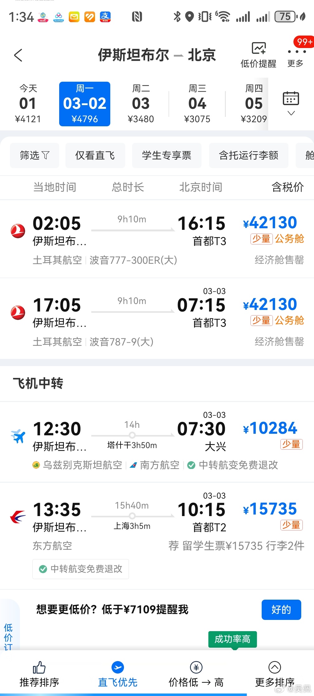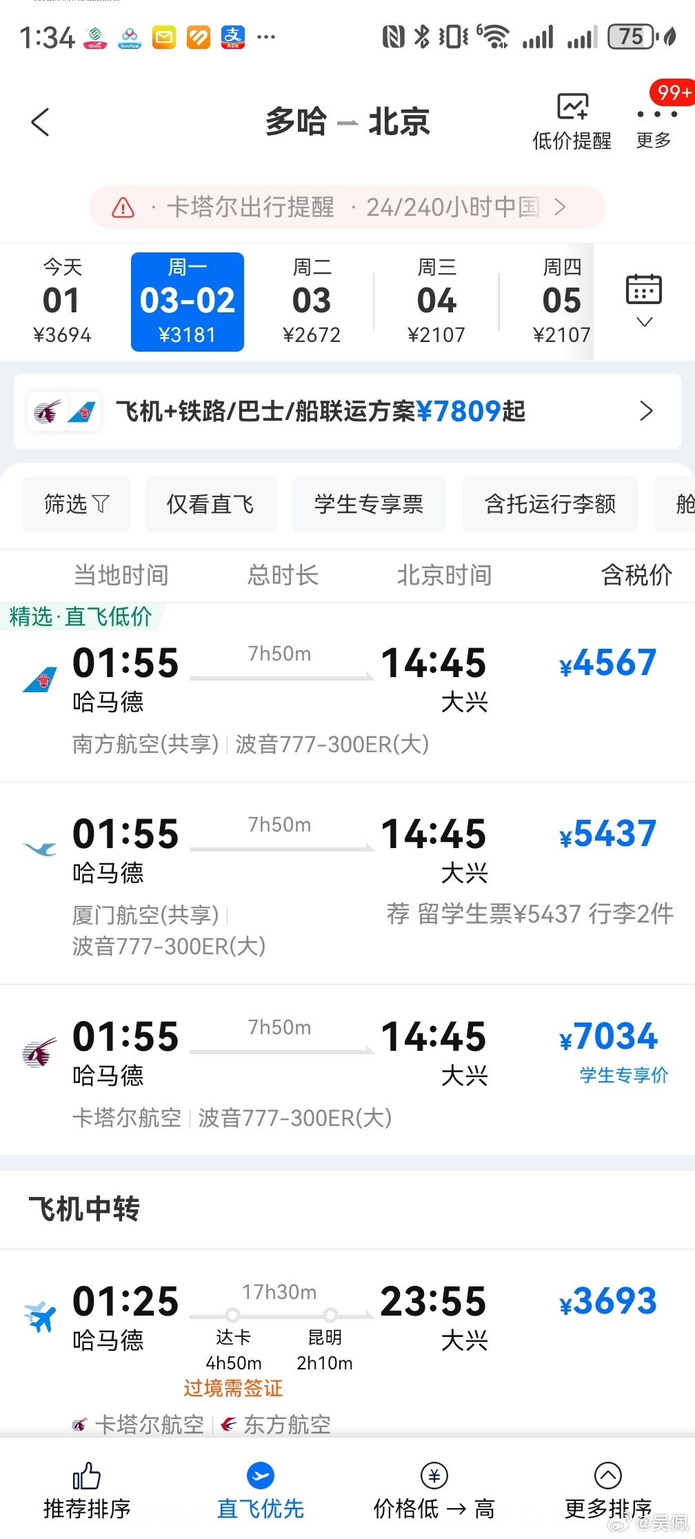 票价没那么可怕,就是涨了涨价。携程回应大马士革到上海机票550万
