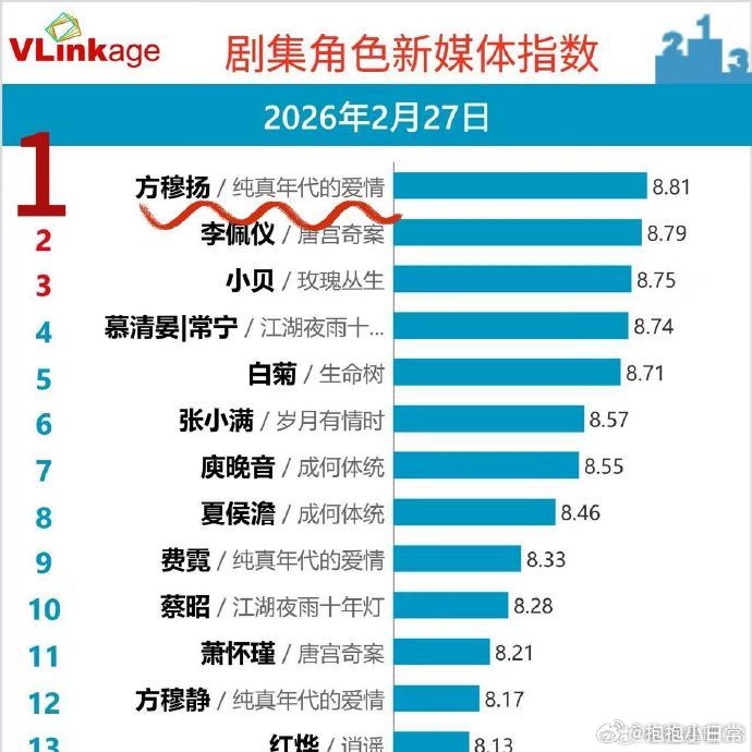 陈飞宇角色热度值破千万太值得庆祝了!陈飞宇饰演的方穆扬热度破千万,他对角色的理解特别透彻,每一个细节都处理得精准到位,把少年的纯粹与深情展现得淋漓尽致,用演技征服观众,热度实至名归