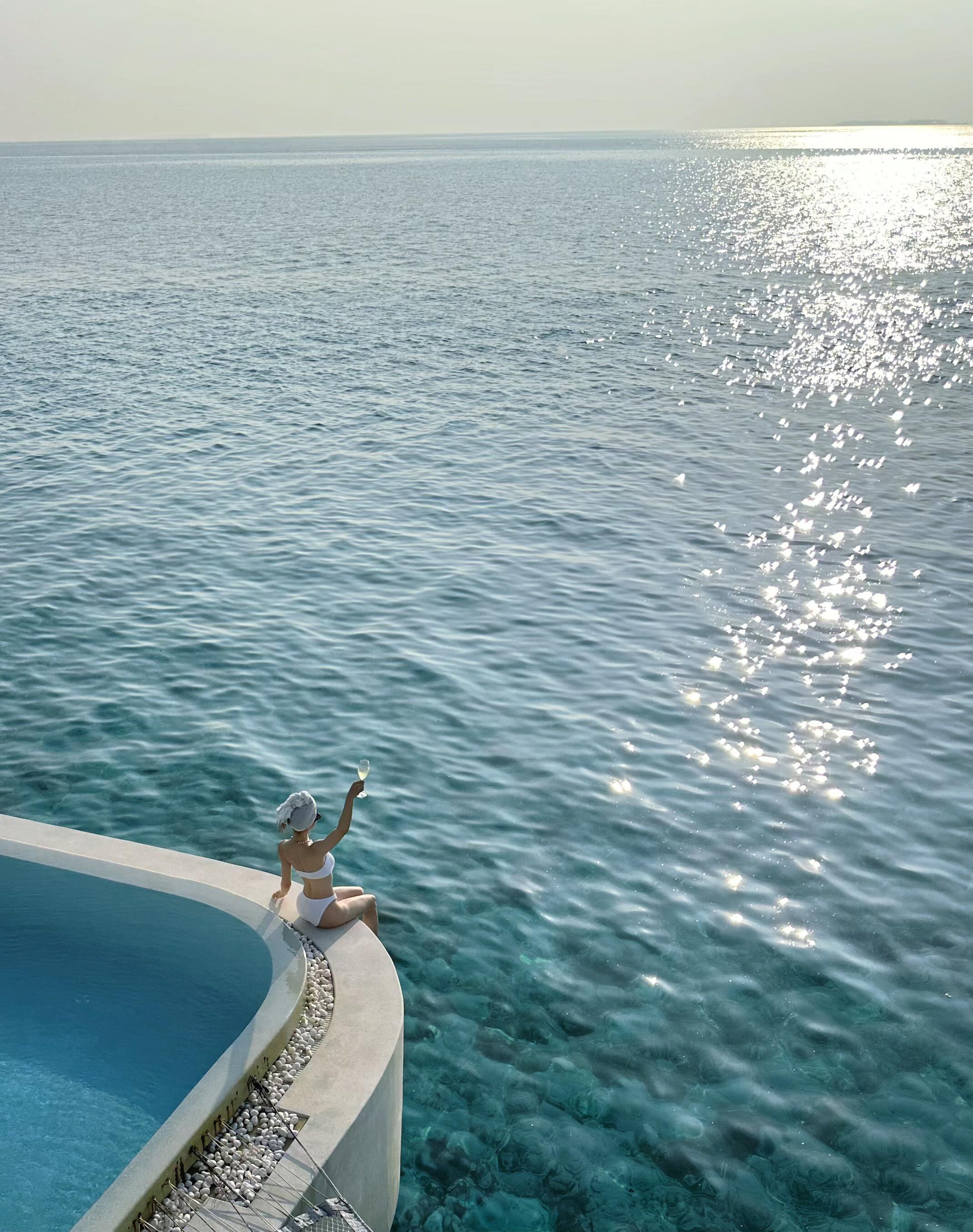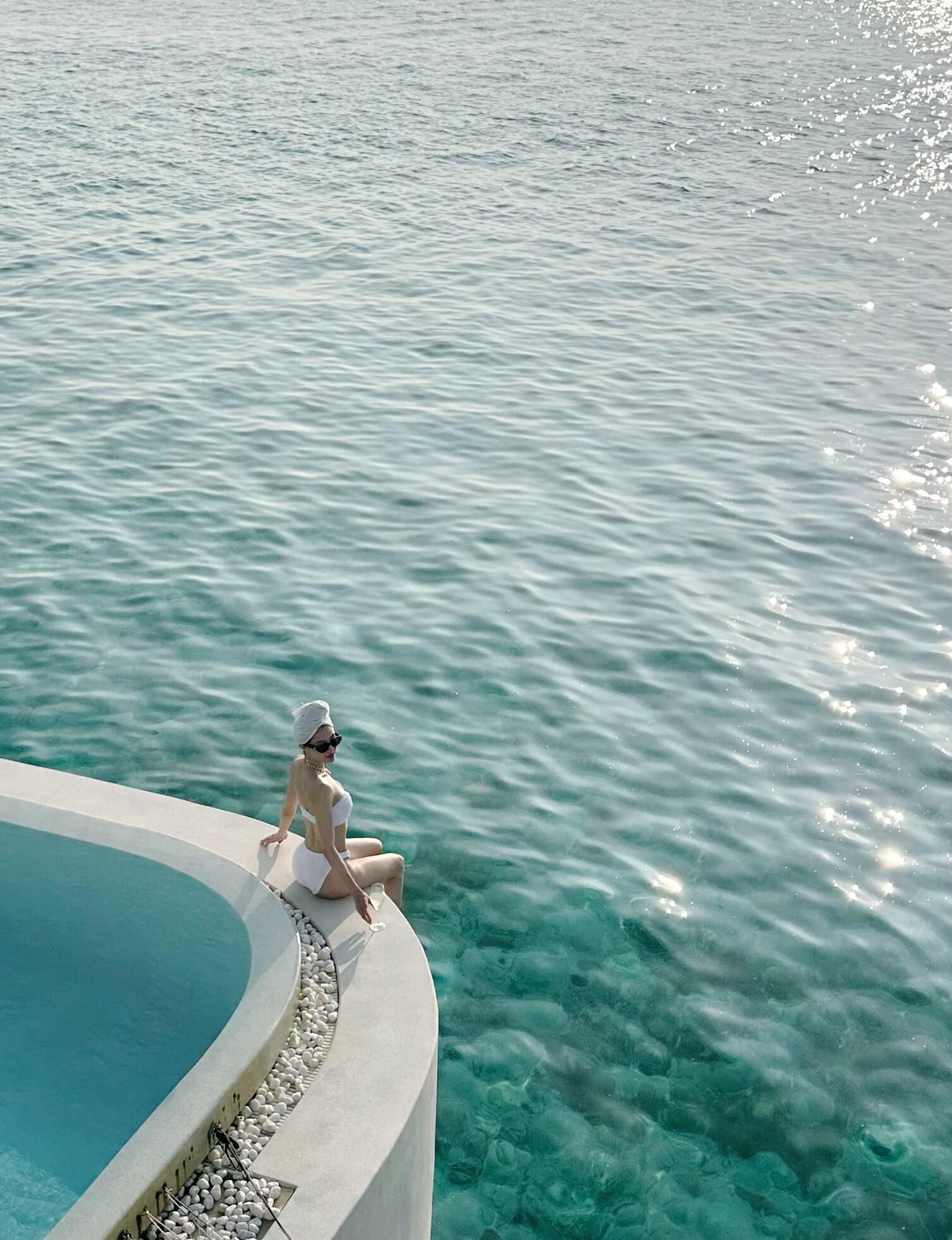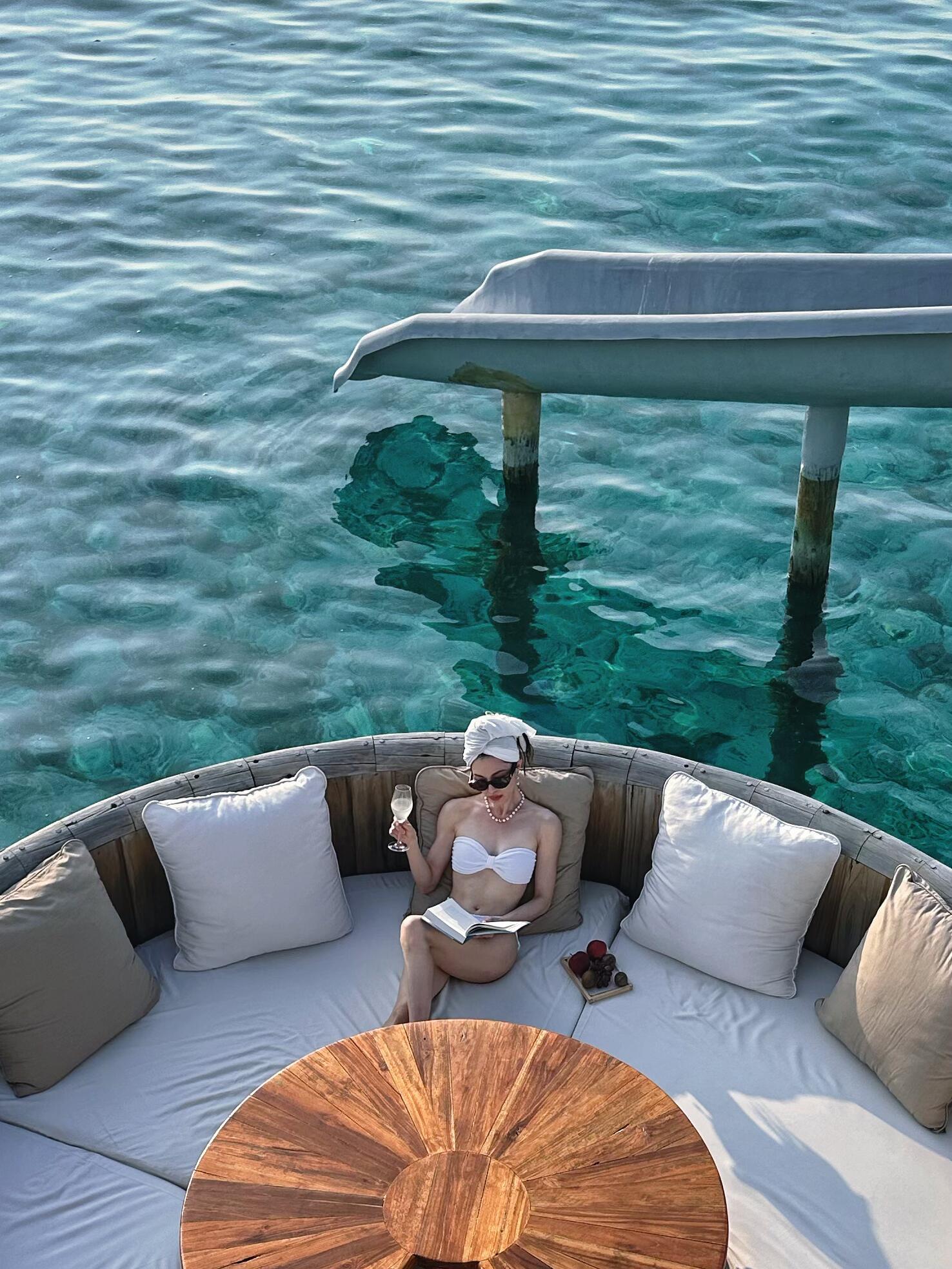钟楚曦马尔代夫旅游照 白色泳装绝美身材✨🤍