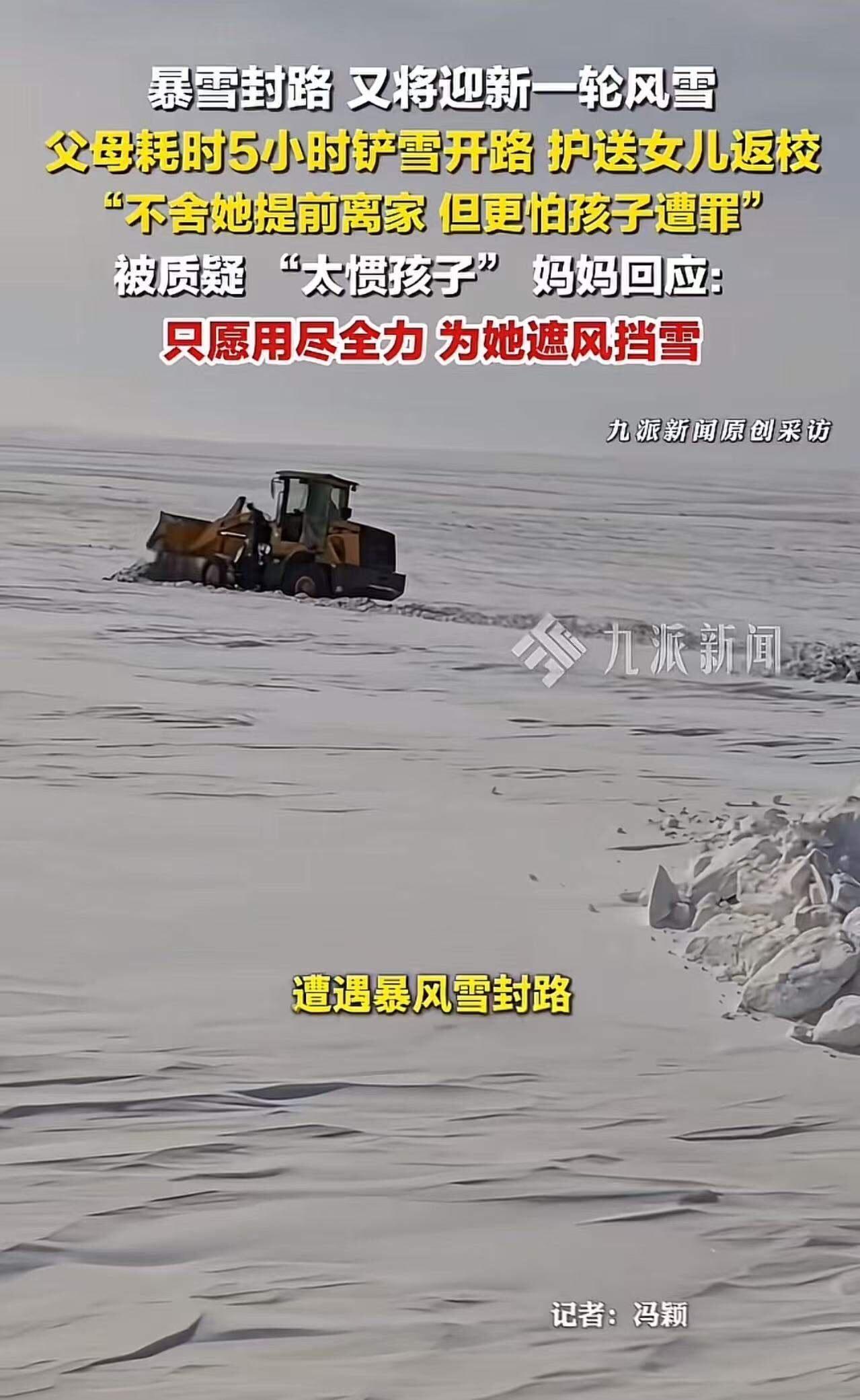 内蒙古,暴风雪封路,“父母铲5小时雪送女儿返校”被骂太溺爱?父母硬核回应:“我不惯自家孩子,难道惯别人?只愿用尽全力为孩子遮风挡雨。” 近日,一则“内蒙古暴风雪封路,父母铲雪5小时送女儿返校”的新闻在网络上引发热议。画面中,狂风大作,雪花纷飞,父母两人肩并肩,挥舞着铁锹,一点一点地清理积雪,只为让女儿能按时到校。这样的场景本应令人感动,但却遭到部分网友的质疑和批评:“这不是溺爱吗?孩子长不大了!”“父母太过娇惯,孩子以后怎么办?” 面对这些冷嘲热讽,父母的回应令人心疼又坚定:“我不惯自家孩子,难道惯别人?只愿用尽全力为孩子遮风挡雨。”一句话,道出了多少父母的心声,也戳中了无数人的泪点。 这场舆论风暴,背后其实反映出现代社会对“溺爱”的复杂情绪。有人担心孩子“被惯坏”,家长过度保护会剥夺孩子独立成长的机会;有人则认为,父母尽全力守护孩子,是最真实的亲情体现。其实,问题的核心不在于“溺爱”与否,而是我们如何理解“爱”的边界。 在这个寒风刺骨的夜晚,这对父母铲雪的身影,是责任的担当,是对家庭无言的守护。暴风雪封路,意味着交通断绝,意味着可能错过重要的学习机会。父母选择亲自行动,而不是简单地让孩子放弃,这背后是一种对未来的期待和对孩子成长的支持——不是溺爱,而是用生命演绎的“陪伴”。 更重要的是,这个故事提醒我们,每个孩子背后都有一对默默付出的父母。那些“溺爱”的标签,有时只是旁观者的误解和社会焦虑的投射。父母的坚守,是对孩子未来最深沉的投资,是世间最无条件的爱。 你是否也曾被“溺爱”论断困扰?你又是否有过为孩子默默付出的时刻?欢迎留言分享你的故事,让我们一起理解亲情的复杂与美好。或许,我们都该放下标签,给予每一份父母的爱更多的尊重和温暖。毕竟,风雪再大,也挡不住那颗为孩子遮风挡雨的心。冬季送孩子 北方学生放雪假 内蒙学生现状 家长送行 内蒙古冰雪季 内蒙降爆雪 内蒙除雪铲
