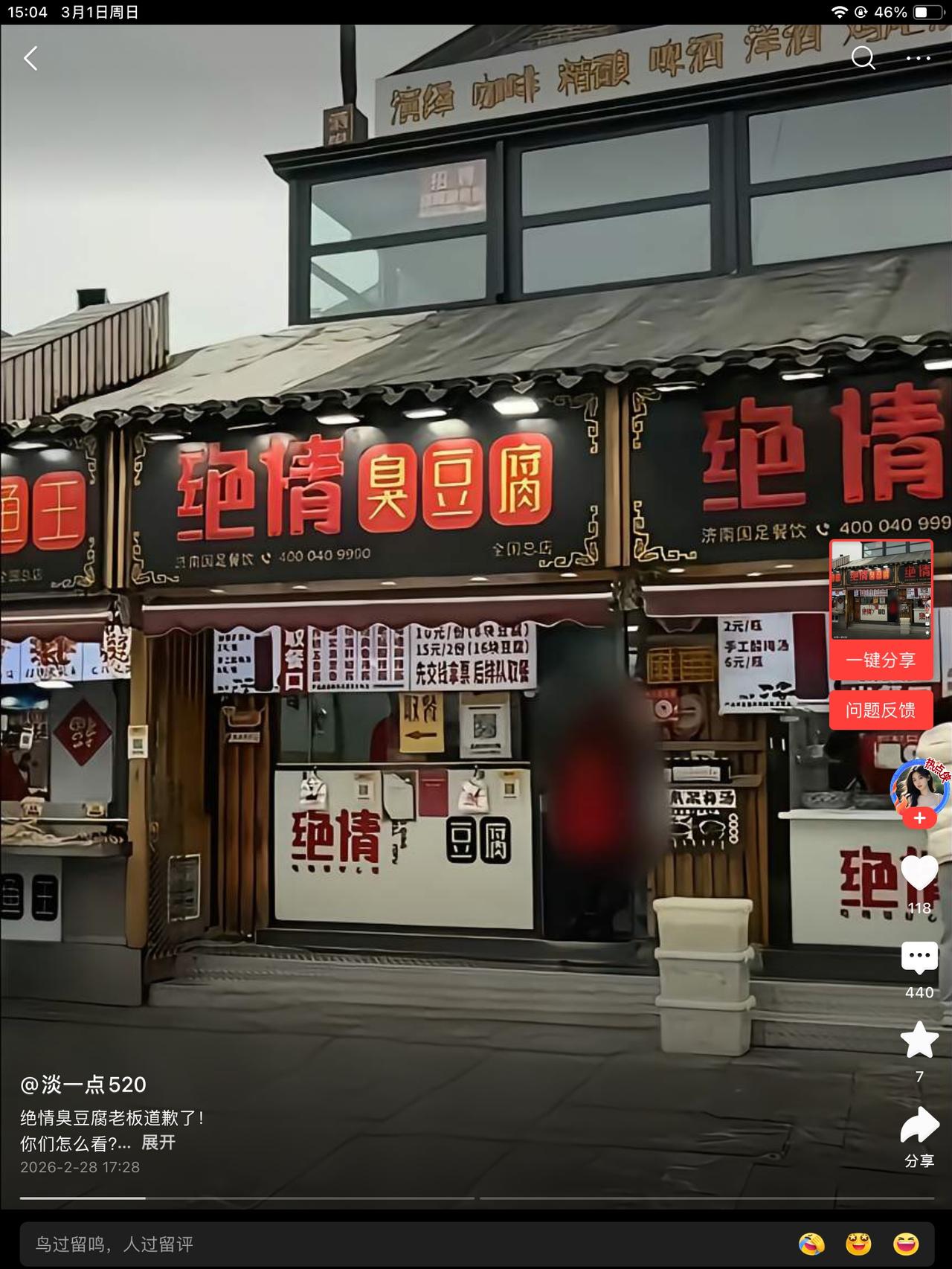 绝情豆腐店的臭豆腐老板卖不出去了,来道歉。是请假,可以扣工资的。做的太绝情了。配的上这个店名。干点别的吧!这碗饭是吃不上了。其实小餐饮,干好了,那是真挣钱。 旅游景点的小餐馆,他也没想到以这种方式出名。员工请假,老板不批,本来没多大事儿,捅到网上才开始审视自己做的是不是过分了。道歉已晚。网友们觉得你不靠谱,是不会去吃了。网友好宽容啊!鸡排哥那么丑,都能去吃。嘴唇黑的,到处演讲。老板也没想到,以这种方式火了。却是倒彩。没人会去了,自己有点数吧!
