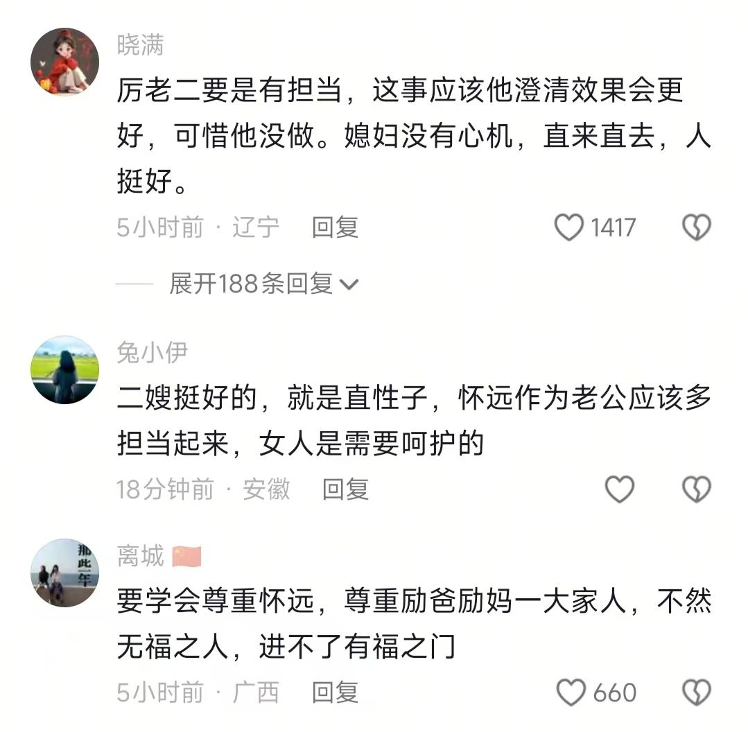 现在全网最后悔的女人就是厉怀远老婆林丽了吧! 不是因为二口子感情有问题,也不是因为拍视频没人看,而是因为有情绪时发了视频,竟有人说她不是省油的灯,真服了 真要命!我这两天刷厉怀远两口子的瓜,刷得觉都没睡好。本来以为就是普通网红夫妻闹矛盾,结果越看越觉得,两口子的家务事,真的别往网上放,不然真的能把人逼崩溃。 说实话,林丽发的那个澄清视频,我翻来覆去看了三遍。本来想挑点毛病,结果看完只觉得郁闷。就是两口子吵架,情绪上头乱发了东西,转头就要对着镜头给全网道歉,还特意澄清自己有哥哥,根本不需要招赘,孩子也是跟着厉怀远姓的,连出生证明都掏出来给陌生人看,换谁不尴尬啊? 说真的,我之前跟我对象吵架,也在朋友圈发过阴阳怪气的话,结果第二天全公司都来问我是不是要分手,我晕,当场就删了。情绪上头的话,真的不能发网上,就像你在家光脚走路,结果把窗户全打开给全小区看,社死到抠出三室一厅。 不是吧?我翻评论区真的和小伙伴都惊呆了,有人说家和万事兴,好好过日子就行;也有人揪着之前的视频不放,胡扯什么她不是省油的灯,连人家爸妈都要骂。老实讲,人家两口子的日子,咱们隔着屏幕能看见啥啊? 本来想跟着凑个热闹,后来发现真的没意思。之前听别人说,人这辈子,口业最损福报,你随便敲一句骂人的话,说不定就成了压垮别人的稻草。难道咱们自己吵架的时候,就没说过出格的话吗? 总之,我想说的是,真的,两口子吵架,关起门来怎么闹都行,千万别往网上发。情绪上头的东西,发出去容易,收回来难。随便吧,反正我是吃过这个亏的,你们可别学我,日子是过给自己的,不是给网友评理的。你说是不是这个理?