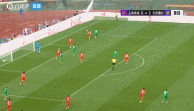 比赛第12分钟,国安新援恩科洛洛右路传中,法比奥、张玉宁抢点都没碰到,皮球滑着右侧立柱出了底线。