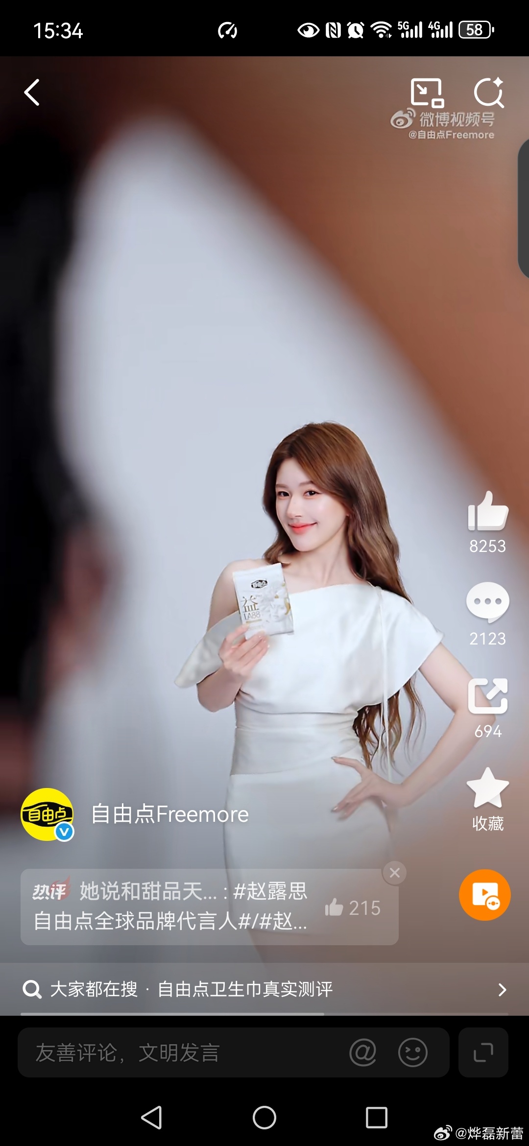 赵露思自由点全球品牌代言人赵露思同款卫生巾 自由点和赵露思的契合度很高。主要体现在: 一是品牌理念与个人气质的契合。自由点坚持“自由、青春、活力”的理念。赵露思出自由,温柔而坚定的特质,与自由点“自在平衡,自我而来”的品牌主张高度契合。
