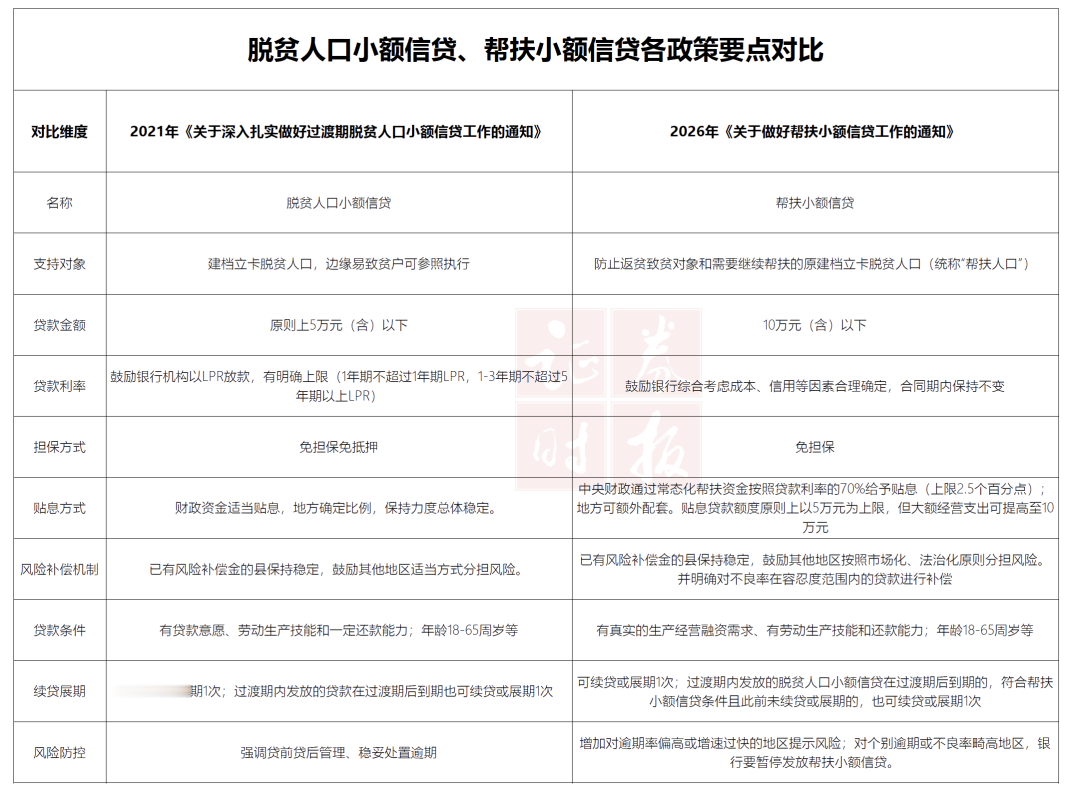 2月28日,金融监管总局、财政部、农业农村部、中国人民银行联合发布了《关于做好帮扶小额信贷工作的通知》(简称《通知》),将脱贫人口小额信贷调整优化为帮扶小额信贷。
