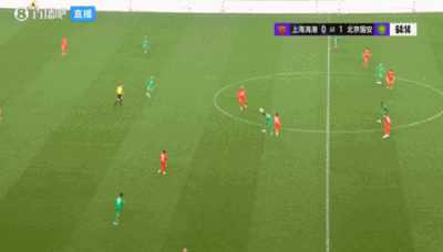 比赛第65分钟,王刚右路送出传中,法比奥禁区内得球后第一时间没有射门,再转身打门时被海港球员封堵。
