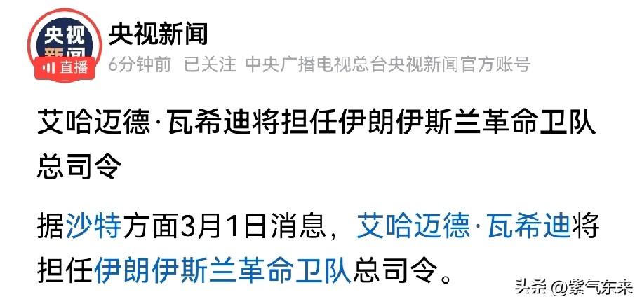 伊朗强硬派高官执掌伊朗伊斯兰革命卫队总司令! 这一强硬派人物瓦希迪的履历可不简单,曾经担任过伊朗国防部长,还是现任伊朗内政部长! 伊朗这补充高级军官的速度可以说无缝衔接 避免权力真空出现混乱,让美以占了空子! 沙特消息称,艾哈迈德·瓦希迪将担任伊朗伊斯兰革命卫队总司令! 瓦希迪可以说临危受命,在担任伊朗伊斯兰革命卫队总司令以前,是伊朗的内政部长! 在伊朗政坛有着举足轻重的作用,属于典型的“鹰派”“强硬派”。伊朗最高领导层 伊朗军事机构