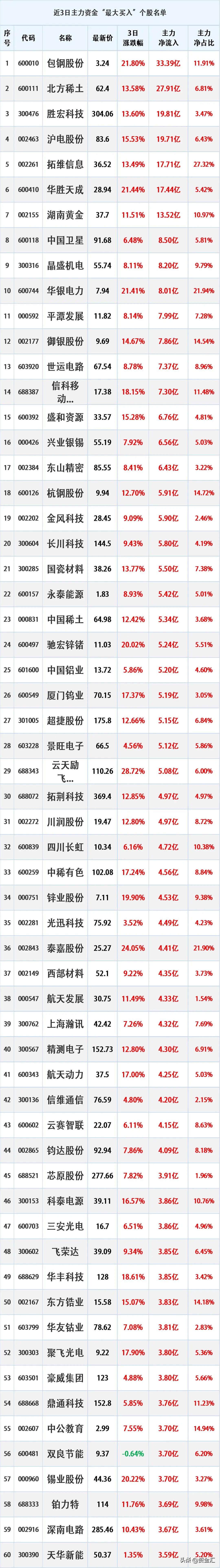 主力资金跑步入场,近3日主力资金“最大流入”这些股票 时间2026年3月1日16